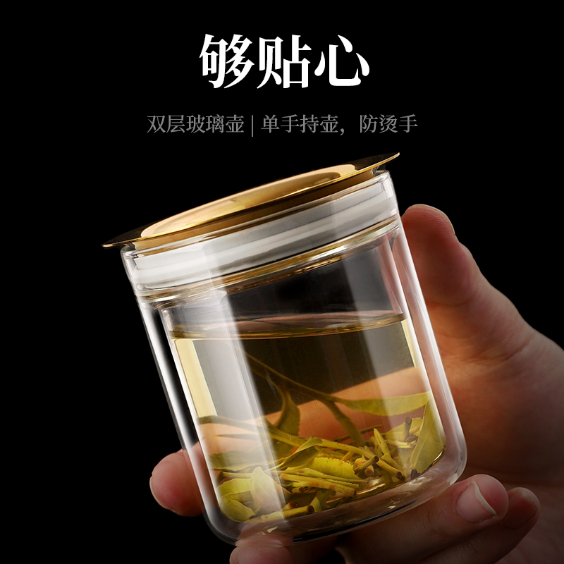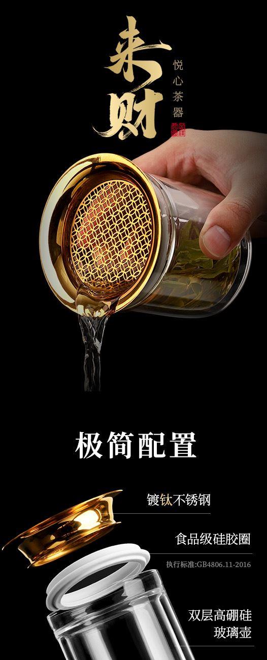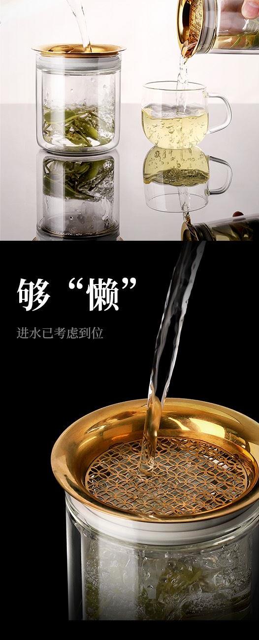原初格物悦心来财旅行茶具铜钱滤网懒人泡茶神器玻璃泡茶壶