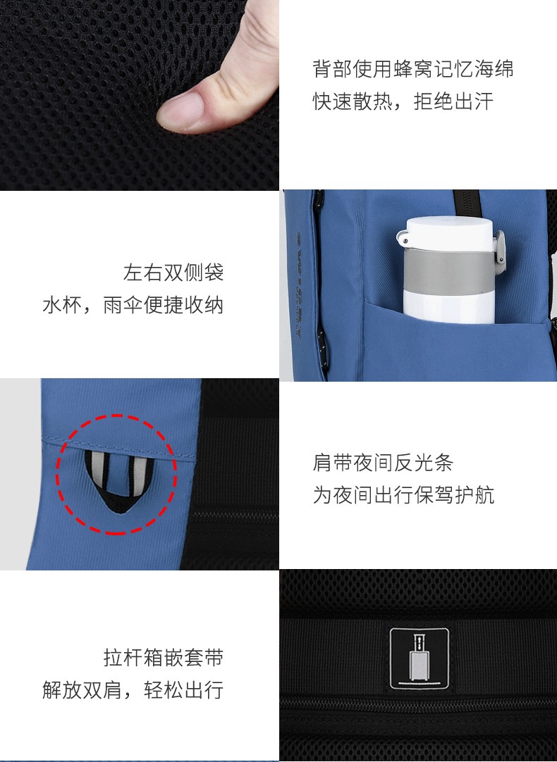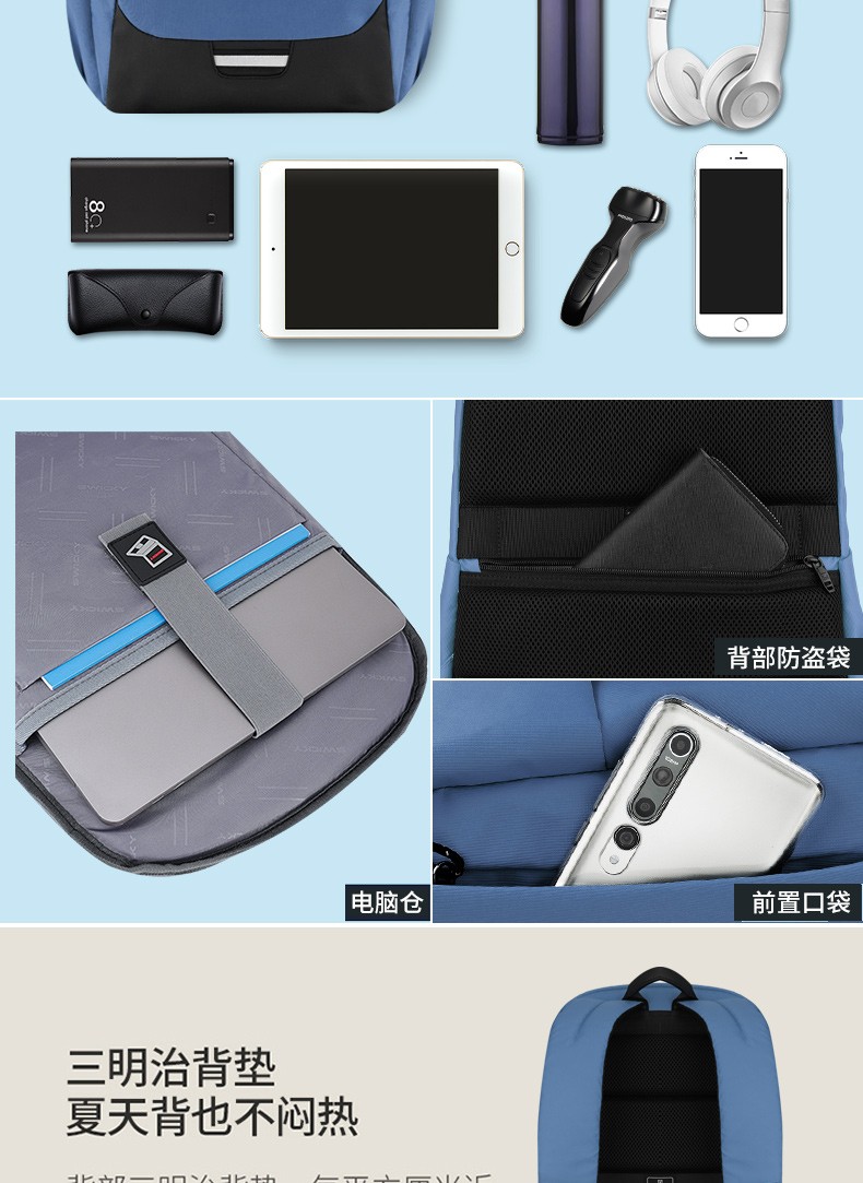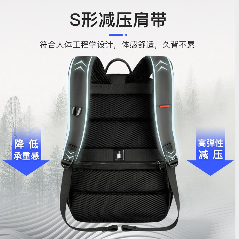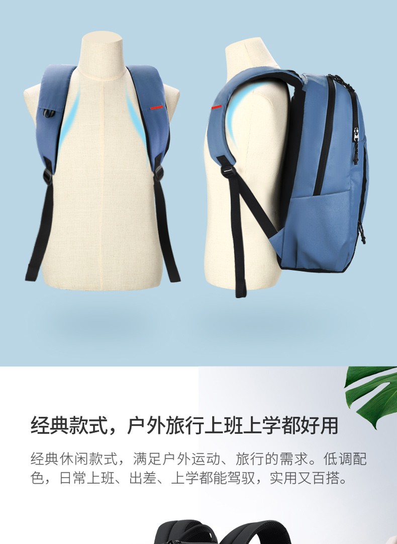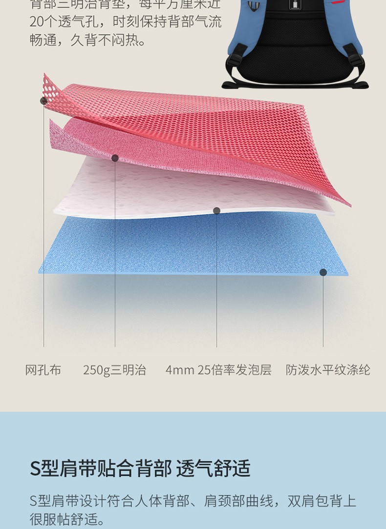 型号:88103大号 重量: 800g 材质:涤纶覆皮膜材质 颜色:黑, 双肩背包:笔记本电脑隔层- 超轻防水面料 - 防尘的皮膜材质,美观实用而且不增加您的负担。弹力蜂窝背板、透气、缓压、减震;多种选择,让颜色走进生活。