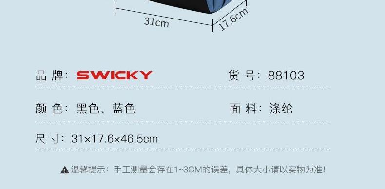 SWICKY高中大学生书包黑色88103