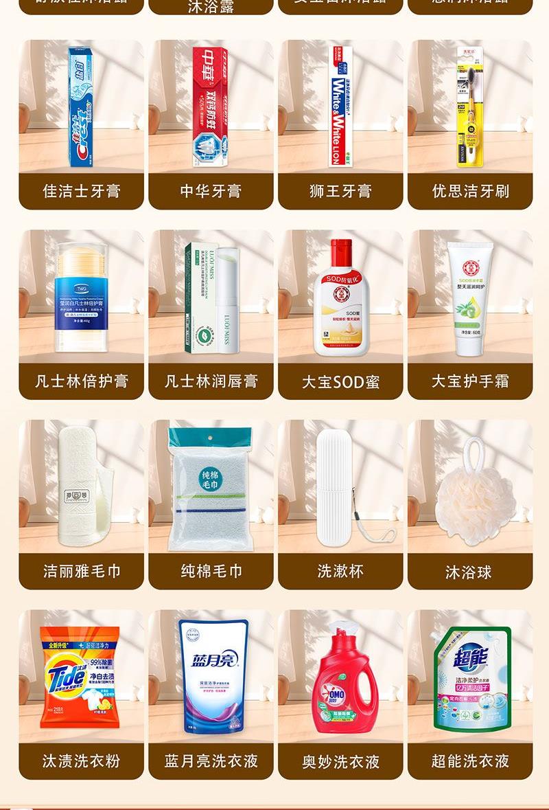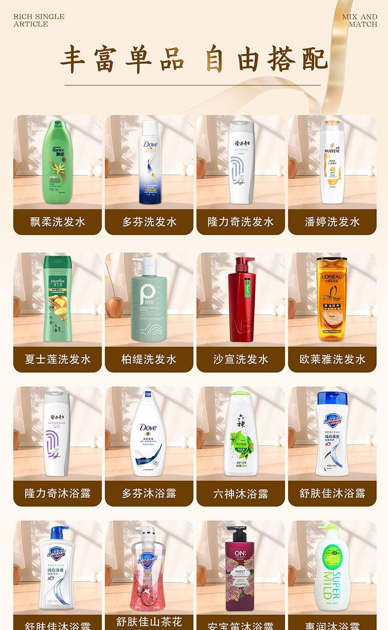 礼盒尺寸:32*8.5*24.5cm 包装尺寸:66*46.5*51CM 产品配置:(香型随机) 洋甘菊护手霜75g 多芬洗发水380ml 多芬沐浴露300ml 中华牙膏90g 多芬香皂90g 洁丽雅毛巾 优思洁牙刷 沐浴球