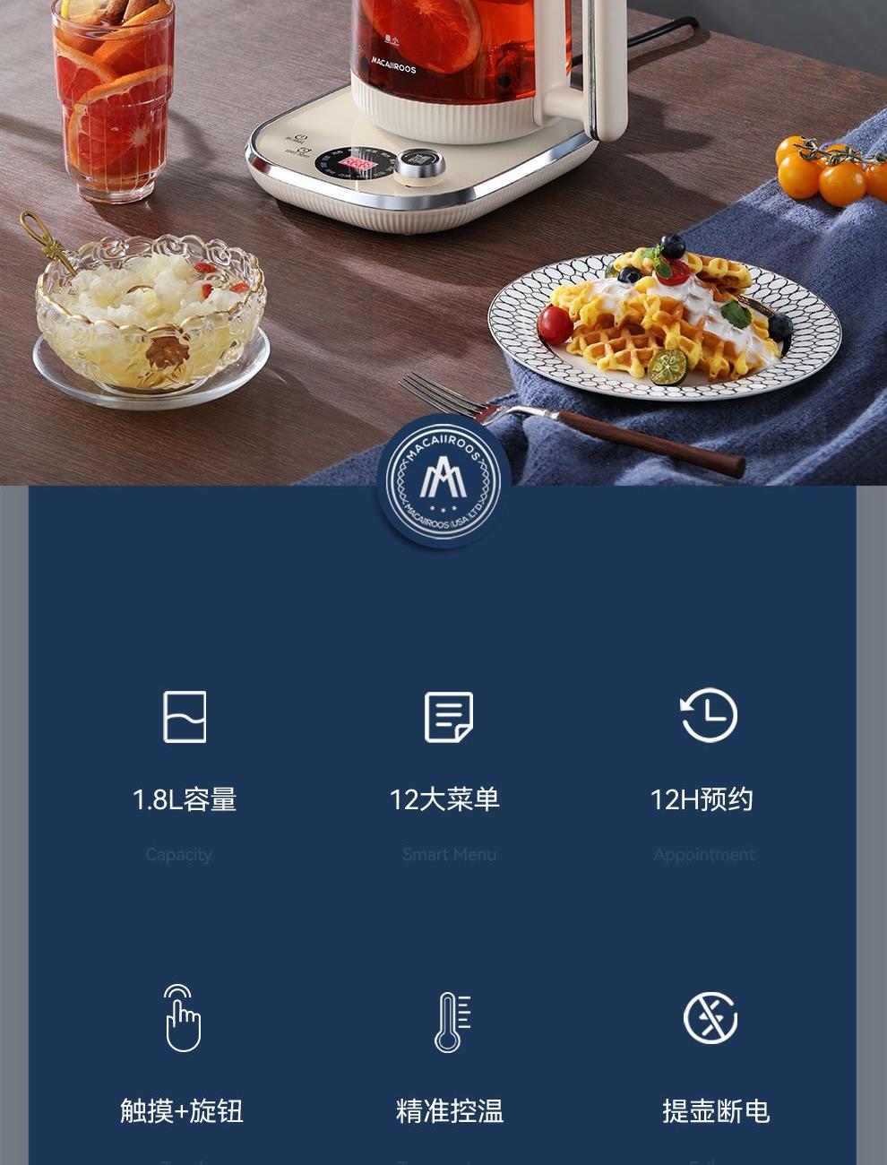 美国迈卡罗多功能养生壶MC-YS18G