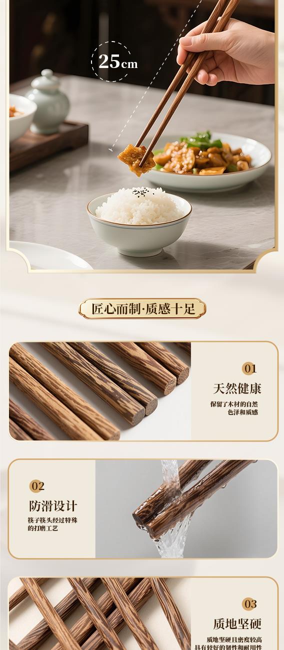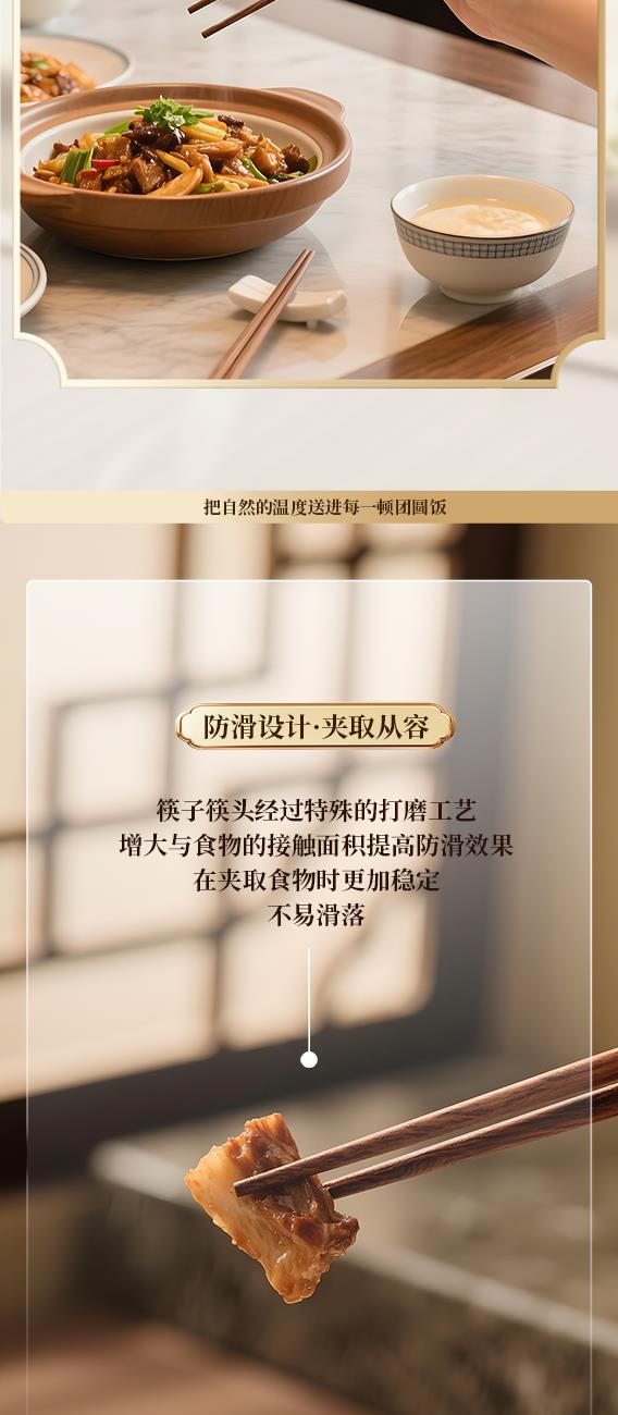 防滑设计:筷子筷头经过特殊的打磨工艺或设计,增大与食物的接触面积,