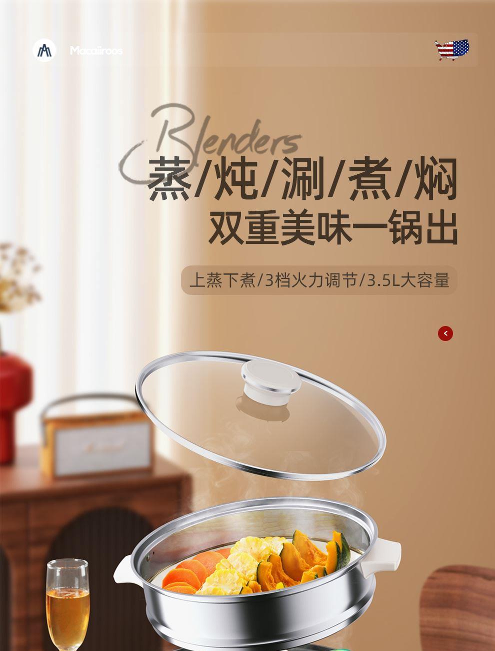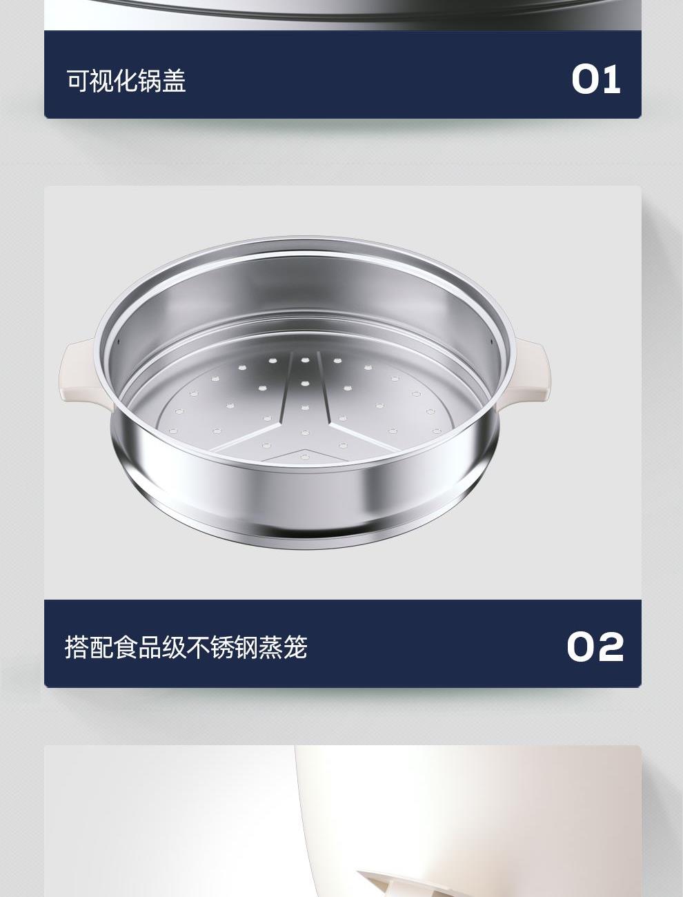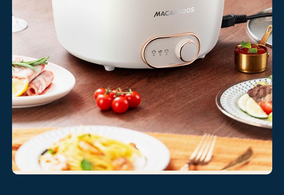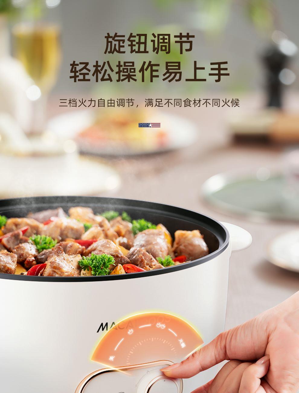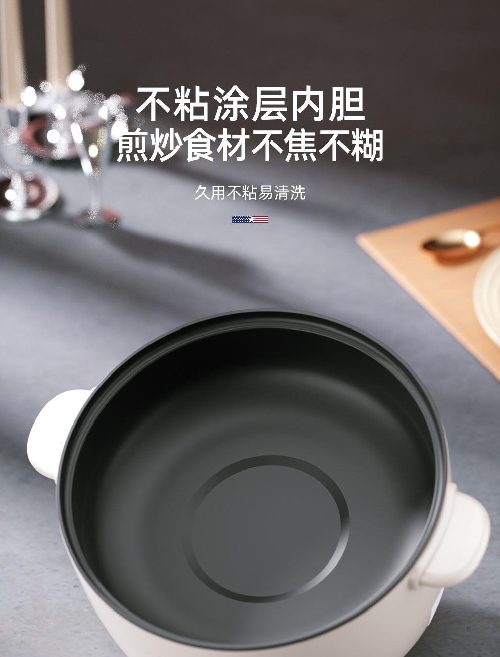 额定功率:1000W 额定容量:3.5L 额定电压:220V~ 额定频率:50Hz 产品净重:1.45kg 产品毛重:1.95kg 整箱重量:16.9kg 一锅多用&三档火力调节煎/煮/涮/焖/炖/蒸一锅多用,三档火力调节,满足不同烹饪需求; 3.5L恰好容量宿舍也能打火锅,1000W大功率且受热均匀,美味不久等; 上蒸下煮配不锈钢蒸笼上蒸下煮同时进行;可煎/可煮不粘锅,易清洗; 双层防烫&双层防烫材质,双边防烫提手方便移动清洗。