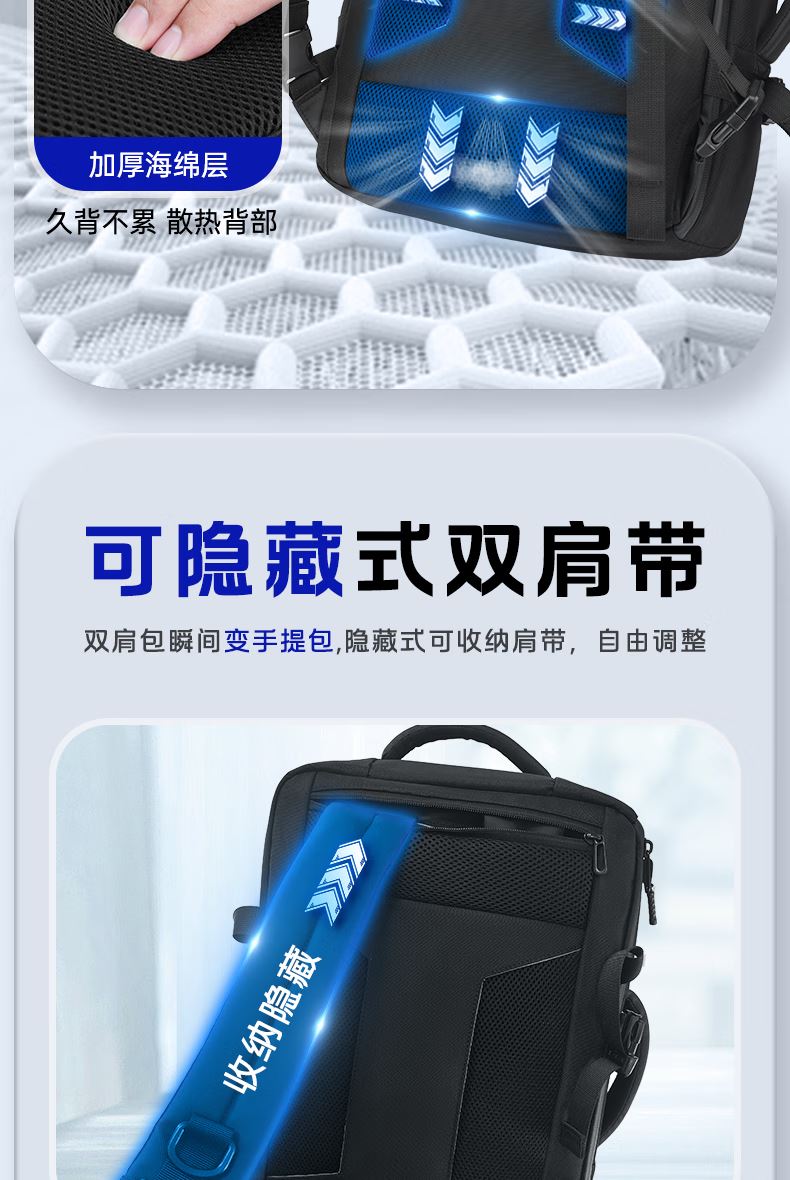 4.多功能背负设计,可侧背/双肩包,竖提/公文包,横提/手提包,适合多种生活,工作场景.