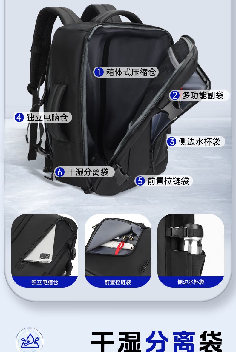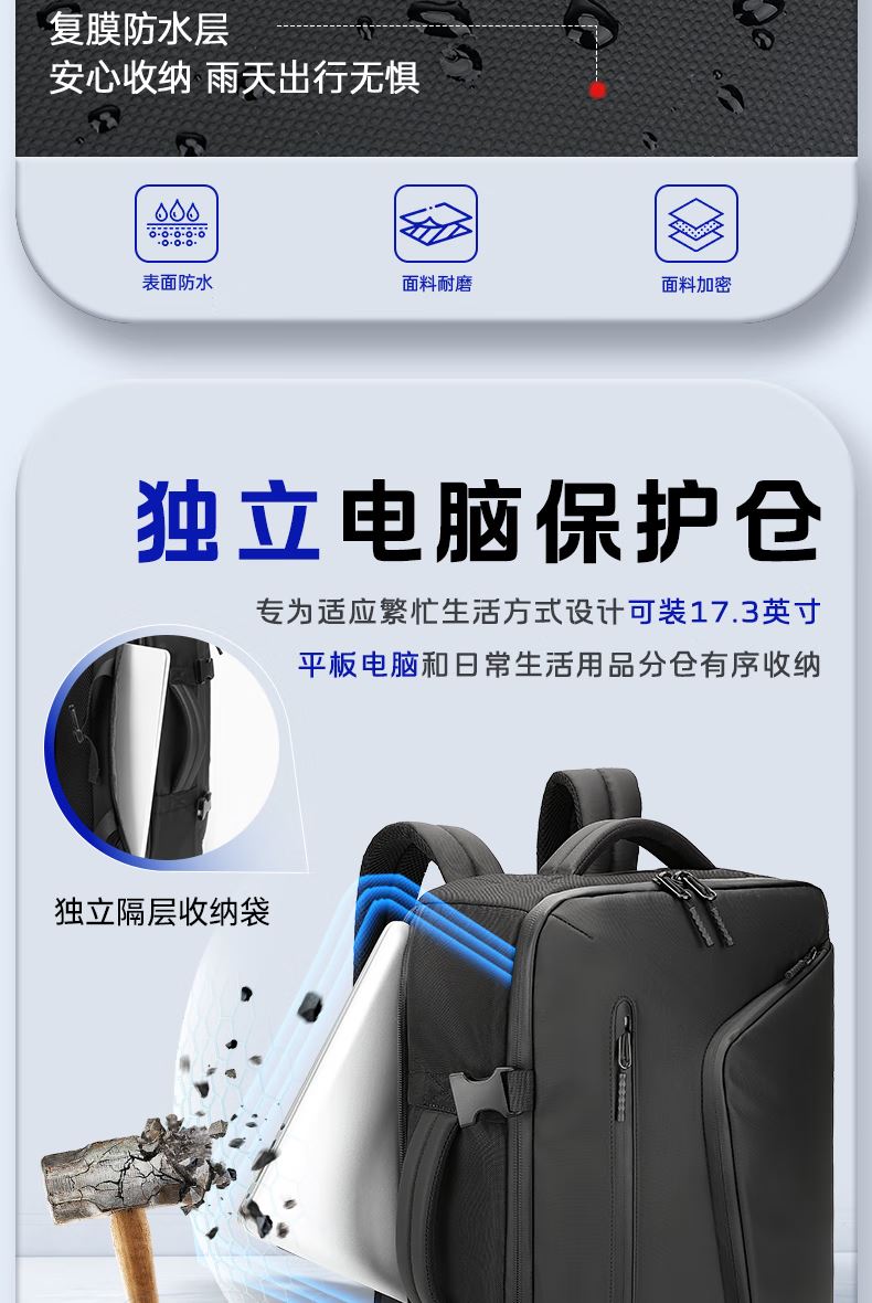 3.加厚独立电子仓,电脑/IPAD双收纳;