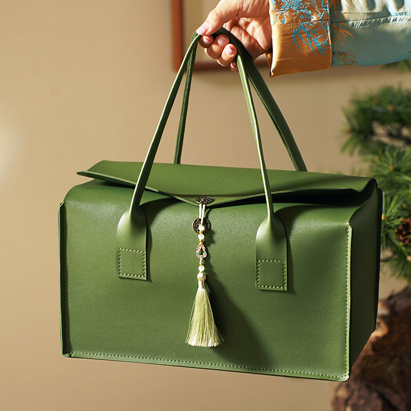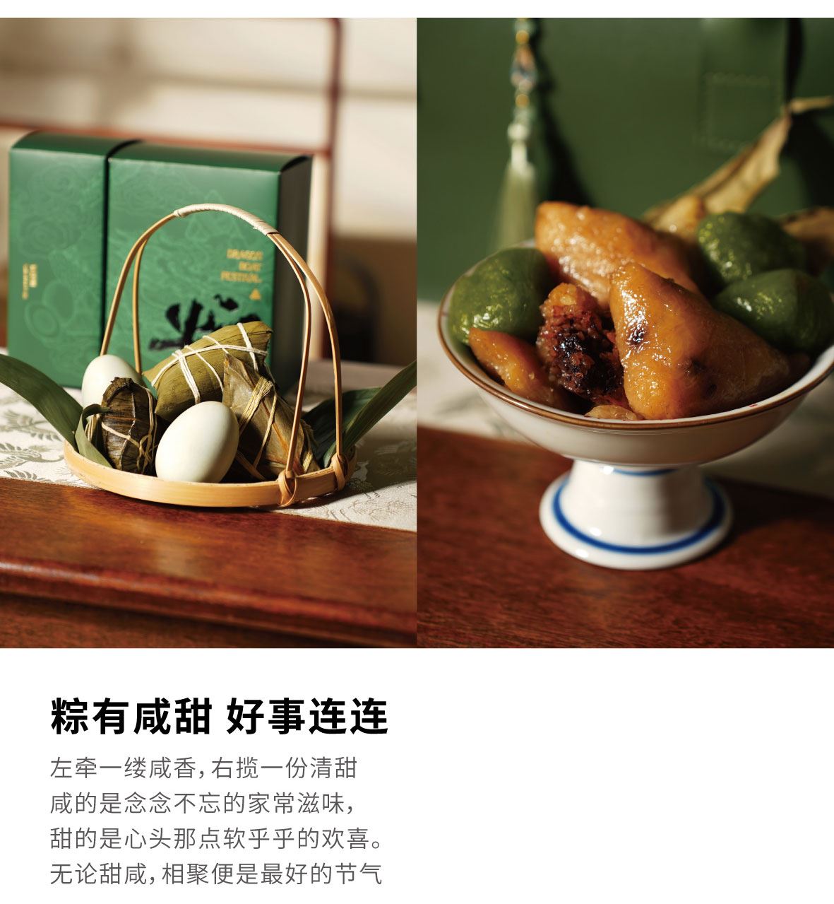 产品尺寸: 皮包:330*185*180mm 粽子盒:120*165*100mm 咸鸭蛋盒:70*165*100mm 香薰蜡烛:罐口65mm,高70mm 鼠标垫/茶席:30*80mm 产品配置公 皮包x1,咸鸭蛋x2,粽子x4,香薰蜡烛x1,鼠标垫/茶席x1,经典鲜肉粽x1,飘香桂花粽x1,低糖青稞蛋黄肉粽x1,低糖青稞豆沙粽子x1 香调信息: 前调:橘子、小豆蔻、苦橙叶 中调:茶叶、茉莉、橙花 后调:香根草、黄葵、鸢尾花 保质期: 粽子:6个月 咸鸭蛋:6个月