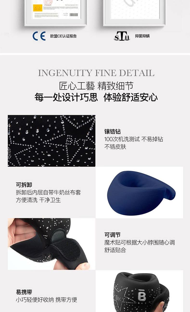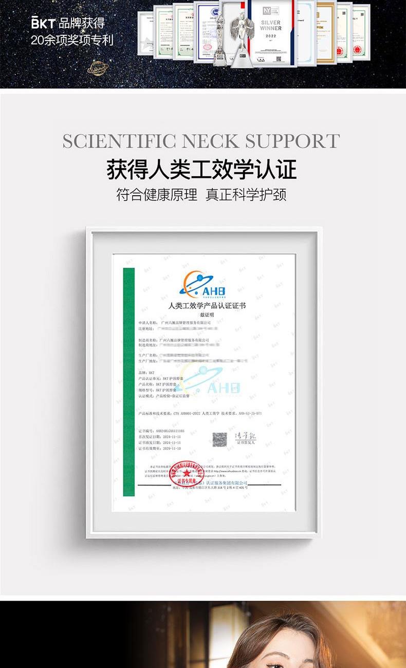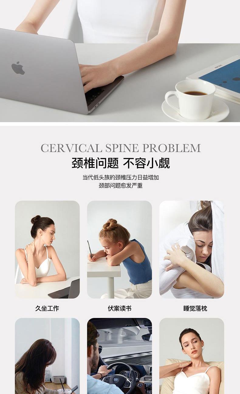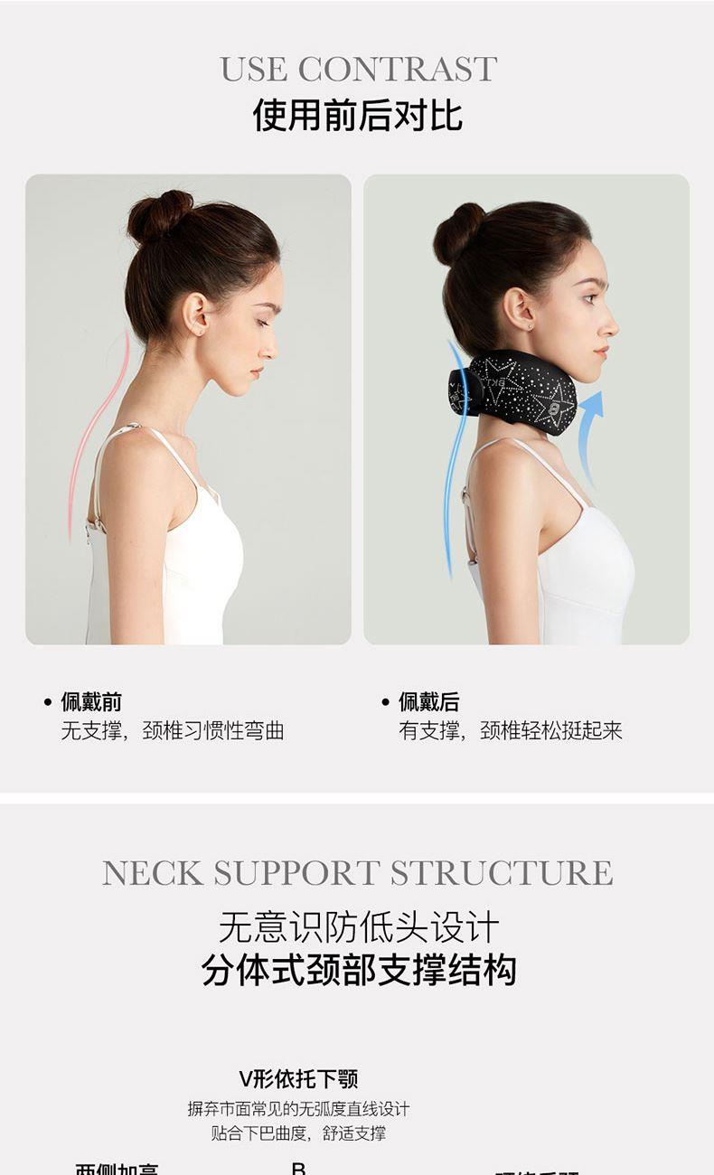 产品尺寸:182*210*91mm 产品材质:面料1:78% 锦纶 22%氨纶 面料2:85% 锦纶 15%氨纶 填充物 :聚氨酯 适宜人群:低头族/办公族/学生等长期低头人群,有不良习惯人群,需缓解疲劳与肩颈酸痛人群,需要改善体态注重颈部健康人群。