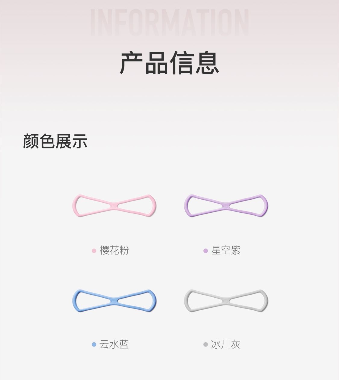 高倍弹力拉伸 10000次强韧抗断裂,3倍拉伸不断裂 舒适防滑手柄柔软不勒手 亲肤无异味,甄选食品级硅胶 小巧便携,轻松放进包包 160g轻量化 轻松练就好身材,一根练遍全身 尺寸:长约45 cm,宽约12.8 cm 颜色:樱花粉、云水蓝、冰川灰、星空紫