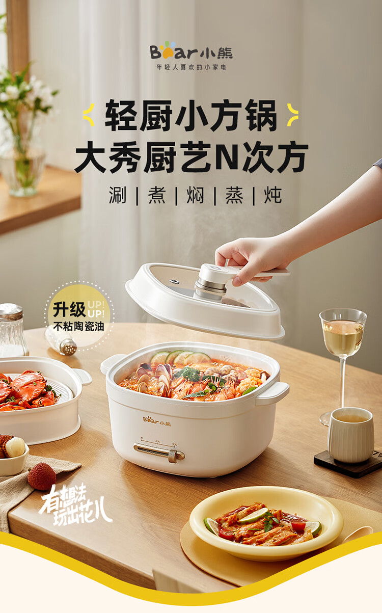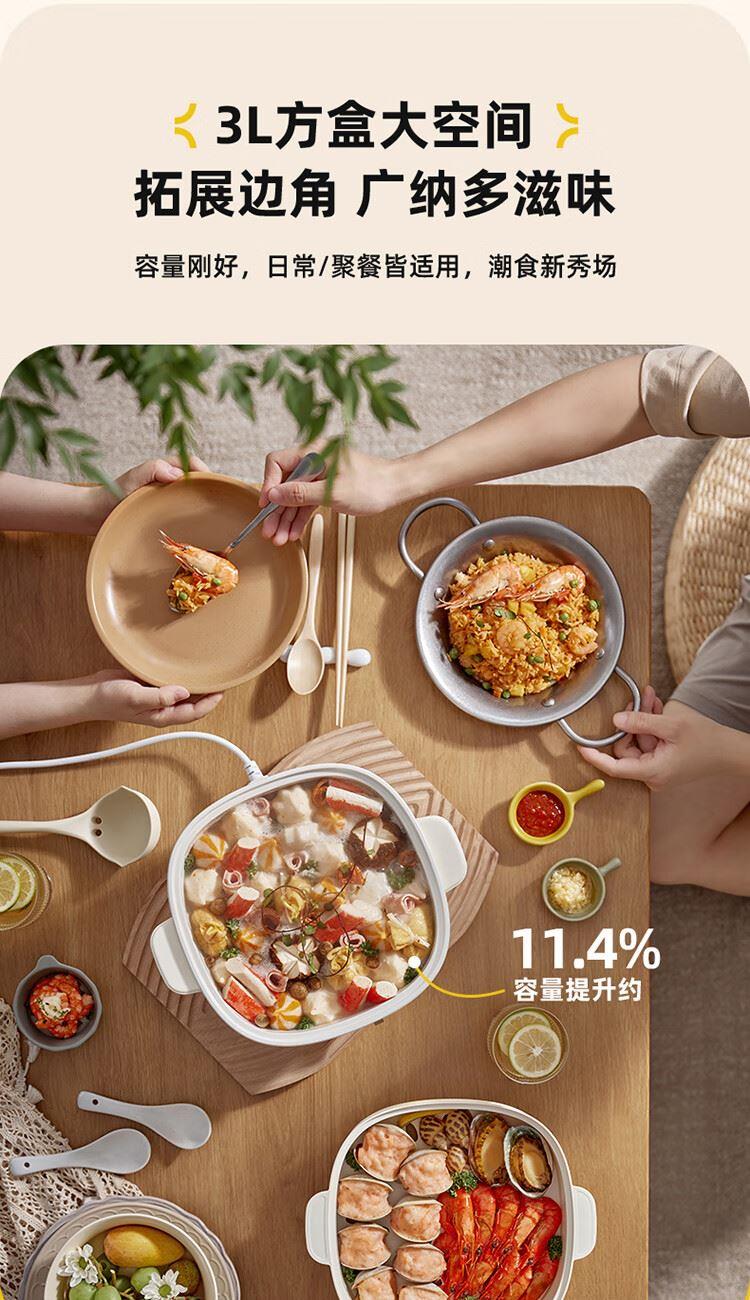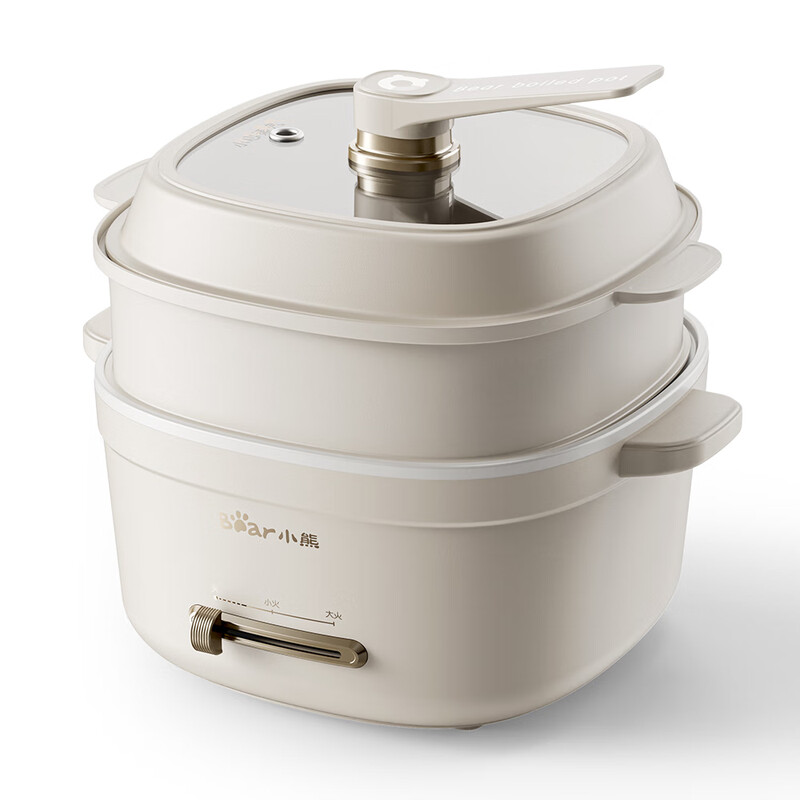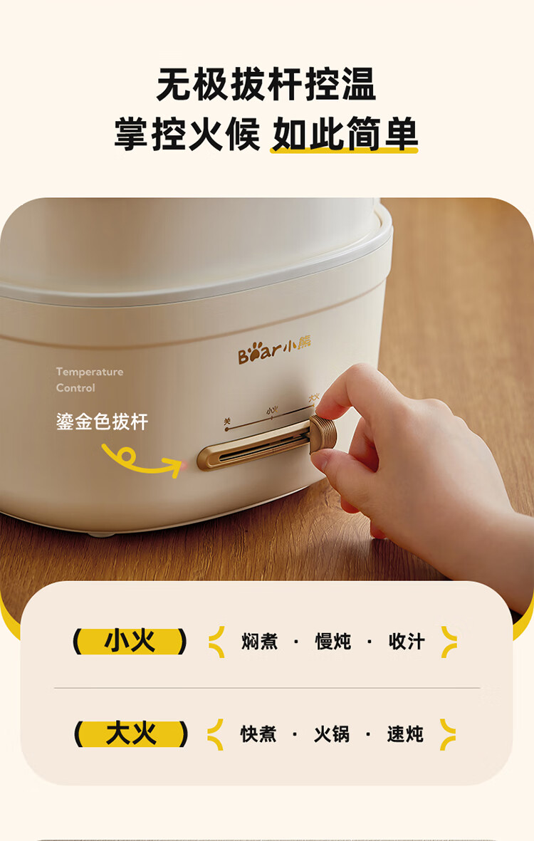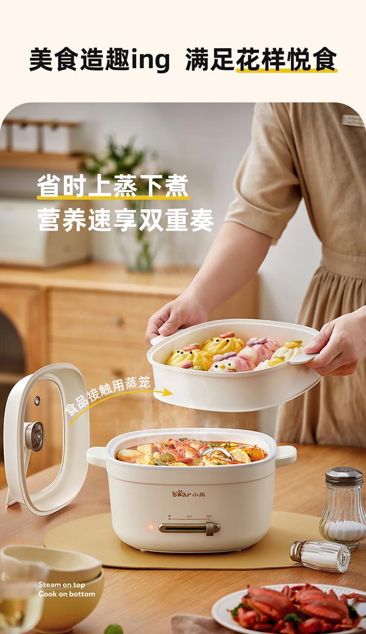 容量 3L 额定功率 1000W 产品重量 2.09kg 包装尺寸 306*306*264mm 3L容量,方盒大空间 拓展边角 广纳多滋味 机械式操控,省时上蒸下煮 1000W猛火速沸,快速均匀导热,速煮不久等