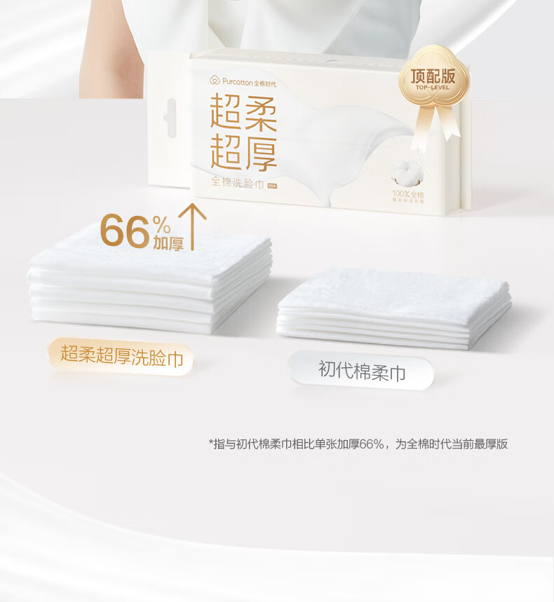 2023超柔全棉洗脸巾75gsm平纹甘油乳 尺寸:200*200mm 数量:60片/包,3包 产品说明:全棉时代洗脸巾品质天花板