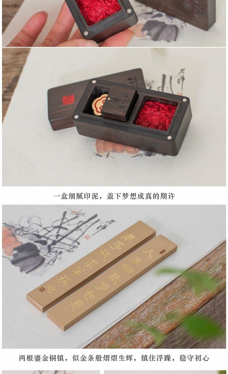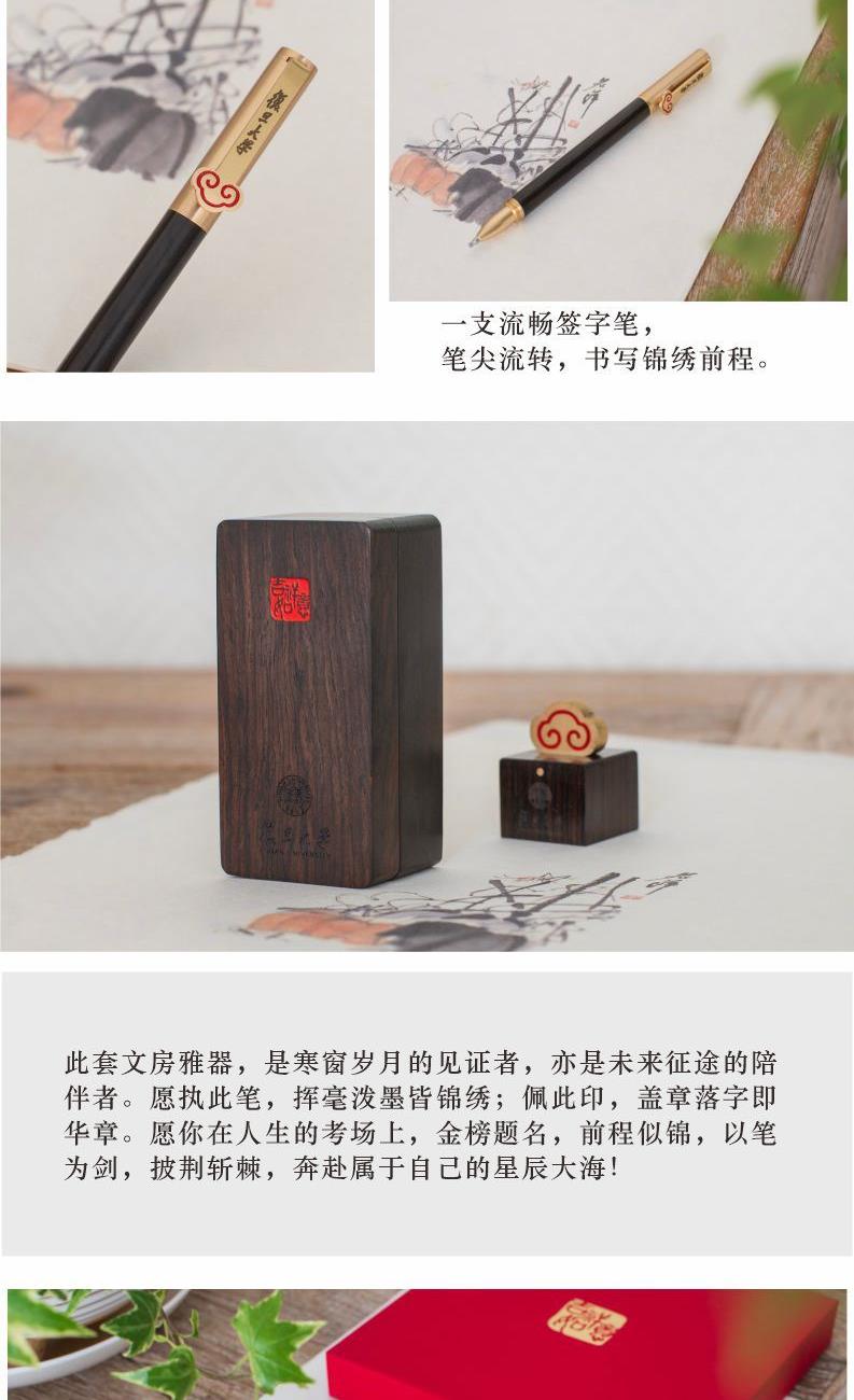 此套文房雅器,是寒窗岁月的见证者,亦是未来征途的陪伴者。愿执此笔,挥毫泼墨皆锦绣;佩此印,盖章落字即华章。愿你在人生的考场上,金榜题名,前程似锦,以笔为剑,披荆斩棘,奔赴属于自己的星辰大海!