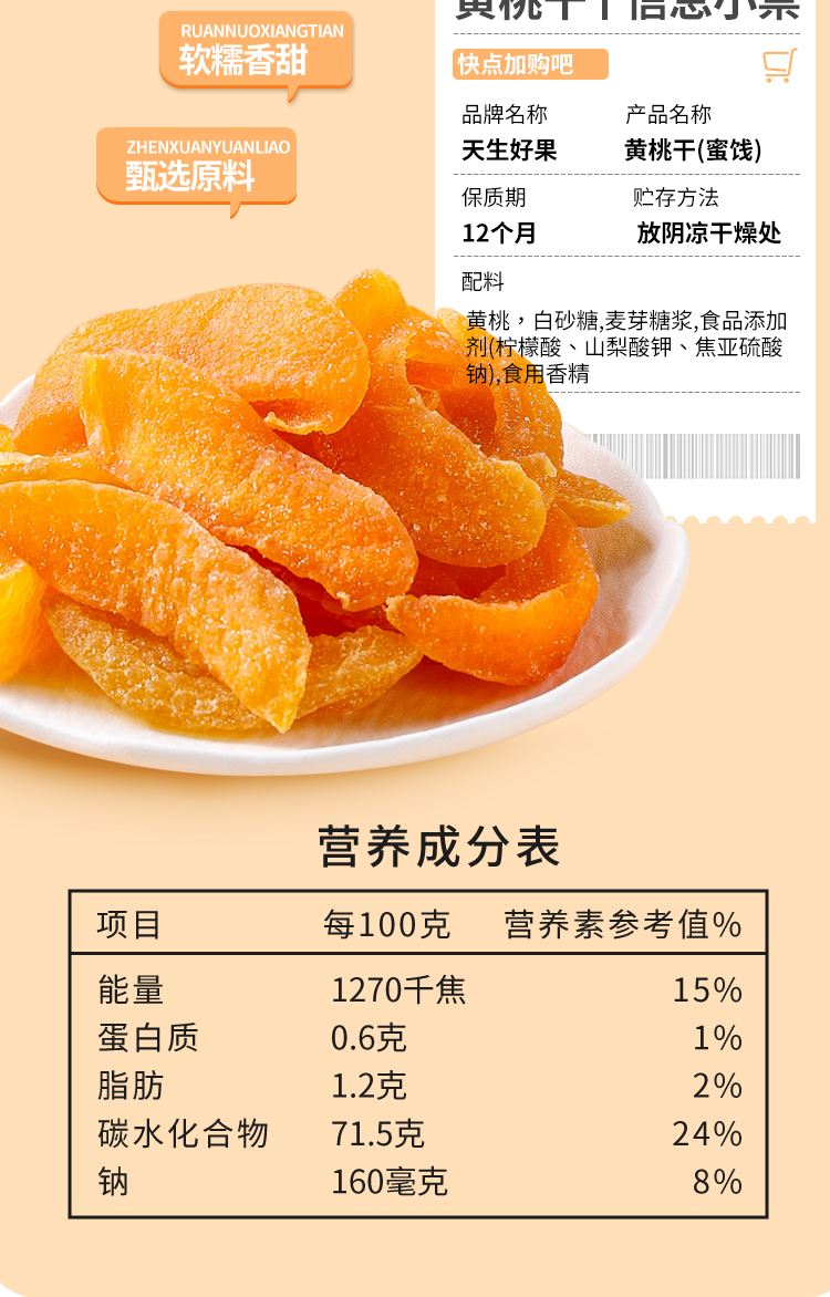 天生好果黄桃干200g罐装软糯香甜桃肉水果干蜜饯桃脯零食