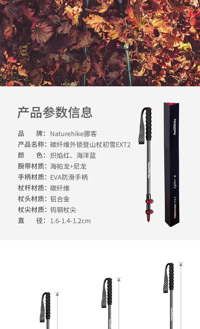 Naturehike挪客初雪EXT2超轻碳纤维外锁登山杖