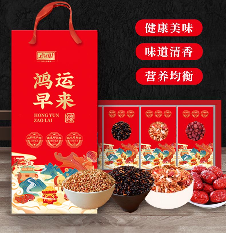 山野源粮年货礼盒鸿运早来开门红谷物杂粮红枣红豆五红粥组合礼品