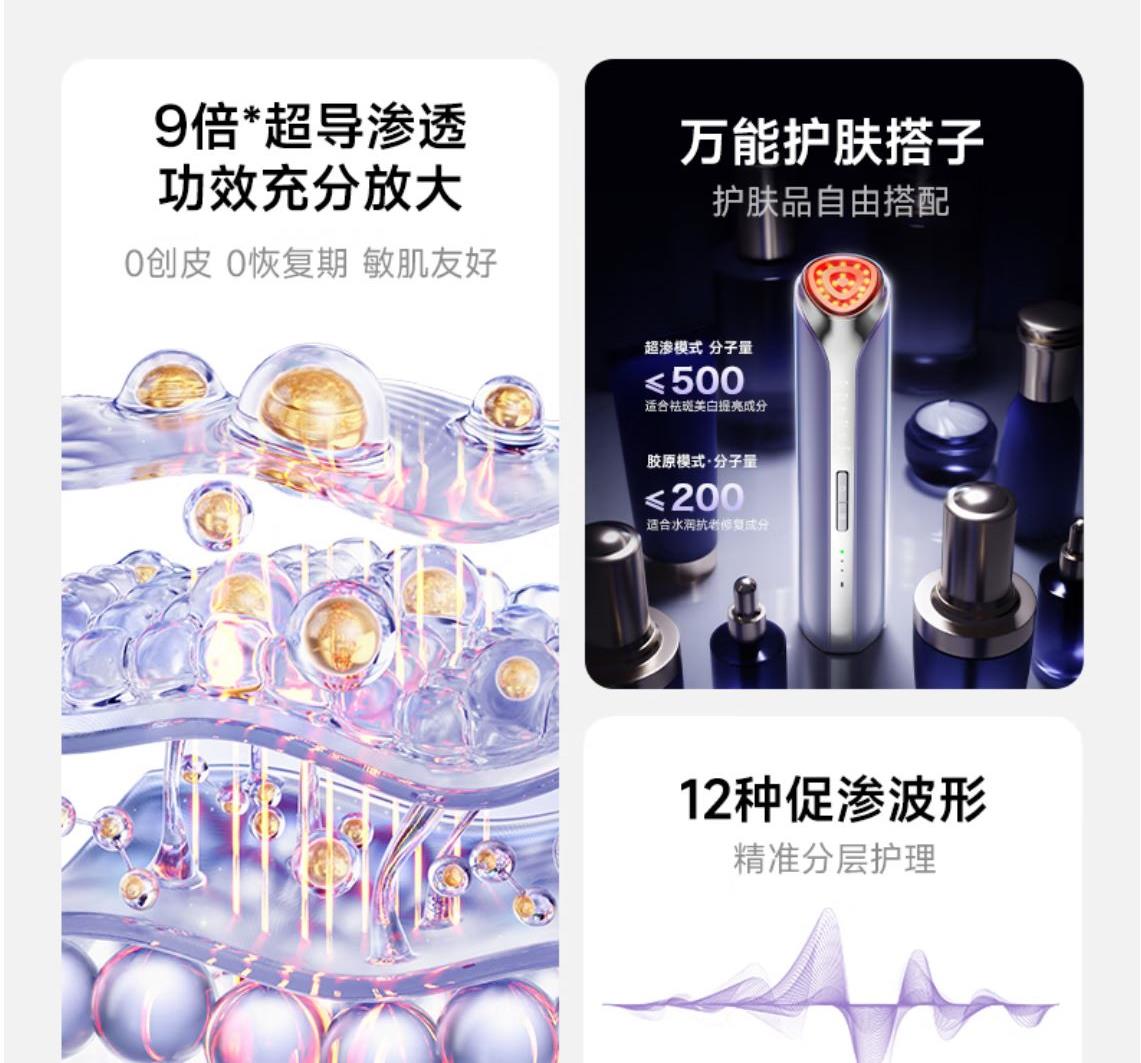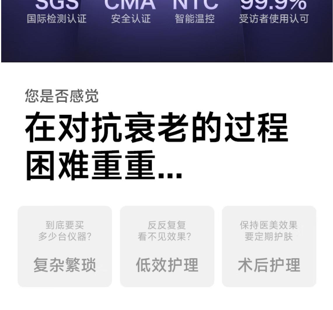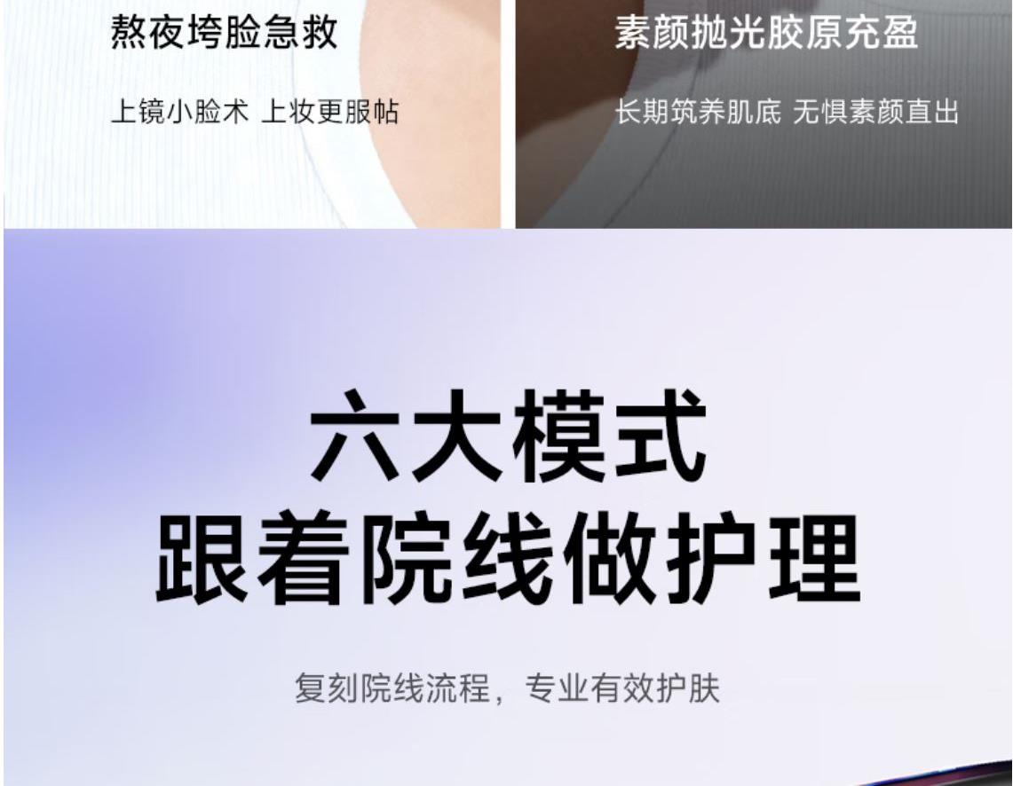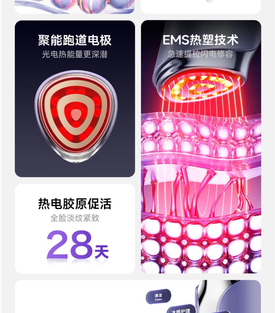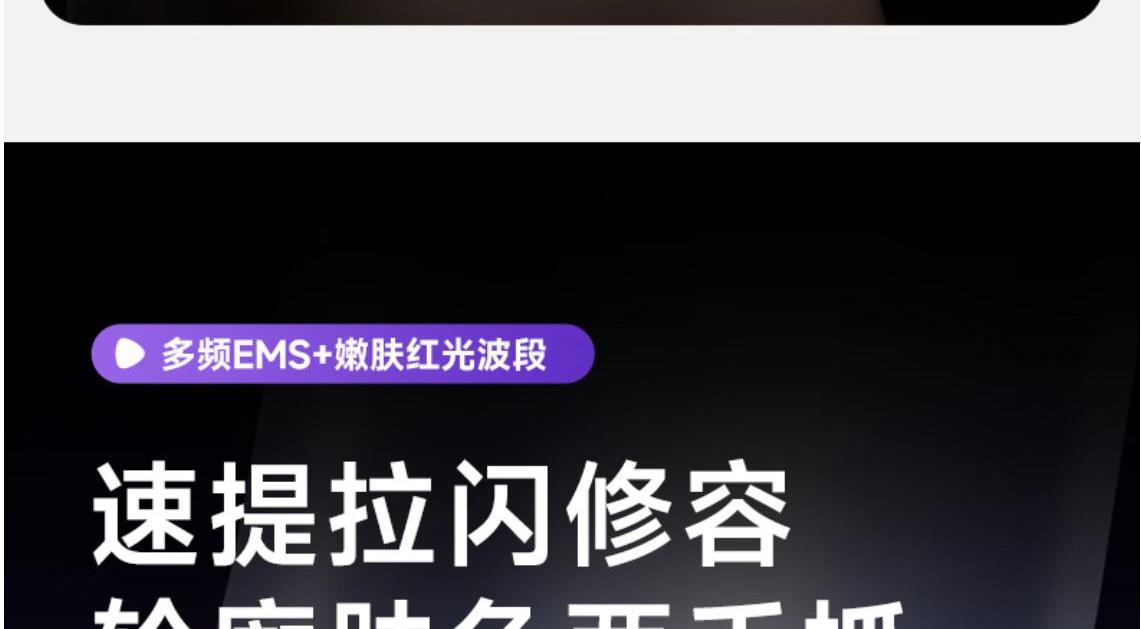 特色功能:透皮导入,热敷模式,震动按摩,冰敷模式 适用部位:颈部,眼部,面部 功效:导入促渗,提拉瘦脸 适用场景:家用,宿舍,户外便携 额定电压:3.7V 额定功率:5W 产品尺寸:长153mm;宽38mm;高36mm 核心技术:温度控制;EMS脉冲;微电流 加热温度:37℃ LED美容光:蓝光;红光;琥珀光;黄光 包装清单:主机*1、说明书*1、Type-C充电线*1
