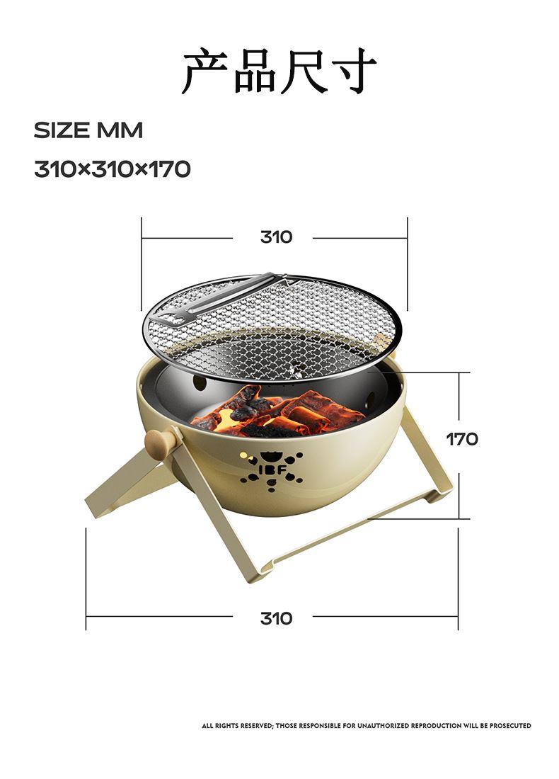 分离式炭盆+煎盘+烤网随心换 炭火滋滋烤肉/铁板煎蛋/烤网煨红薯
