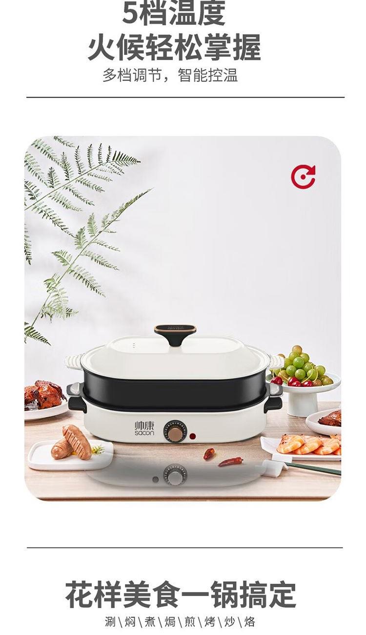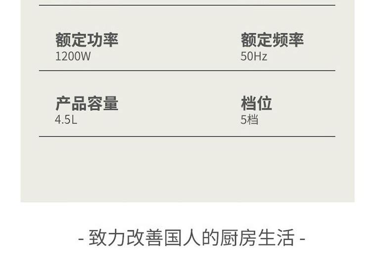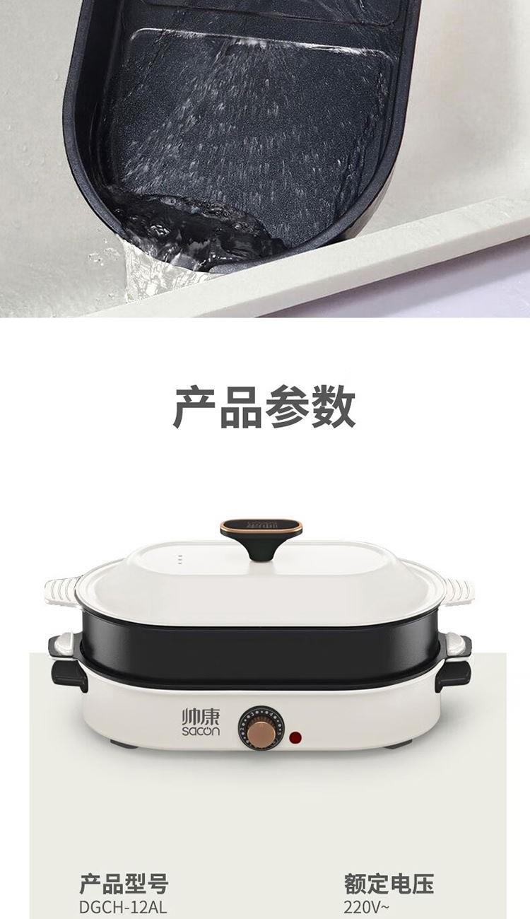 容量:4.5L 锅面直径:25cm 涂层材质:麦饭石涂层 认证型号:DGCH-12AL 颜色:白色系 锅体材质:铝合金 档位:5档 额定电压:220V 额定功率:1200W 类型:多功能锅 操控方式:旋钮式