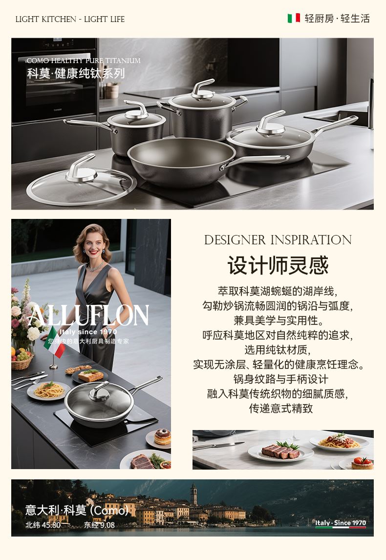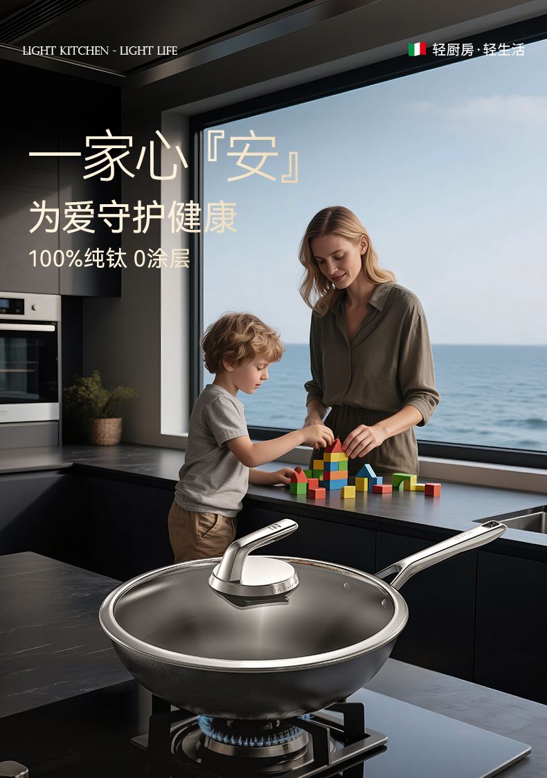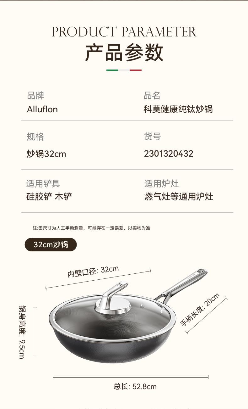 Alluflon阿路弗仑科莫健康纯钛炒锅32cm