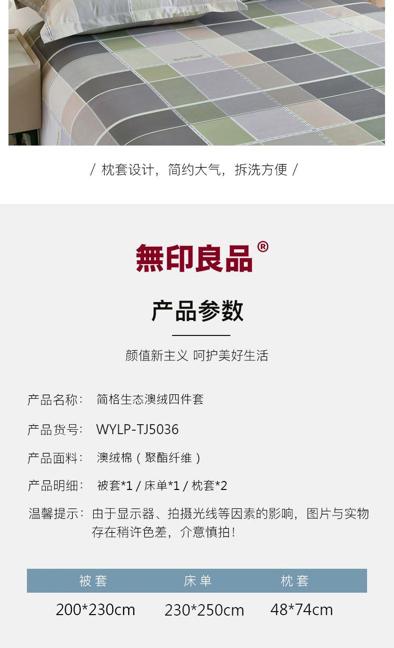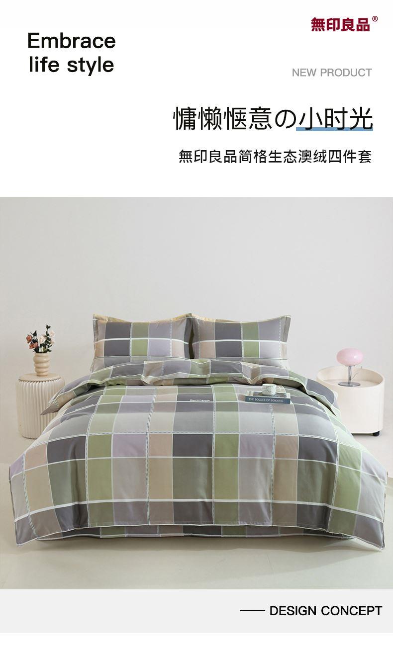 無印良品简格生态澳绒四件套WYLP-TJ5036