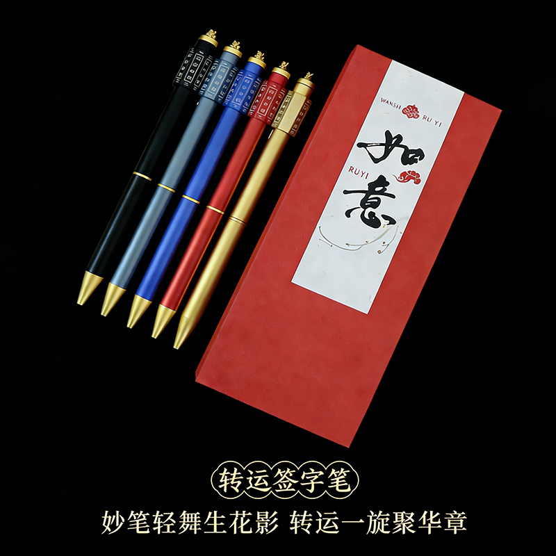 转运解压笔 五行笔 颜色:红色、黑色、蓝色、灰色、金色 材质:金属 配置:礼盒、手提袋 适用场景:年会、商务活动、展会纪念、学校、教育结构随手礼 、解压礼品