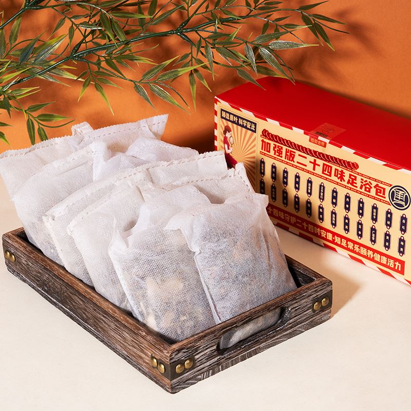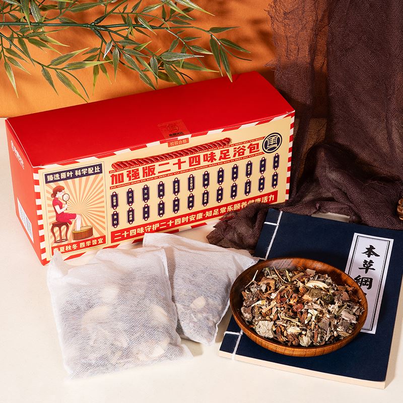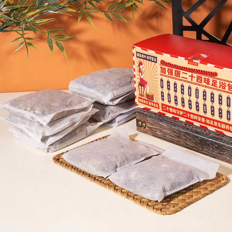 送礼送健康,客户都喜欢,泡脚,臻原叶,真养生,加强版二十四味足浴包。原叶加强版二十四味足浴包,精选益母草、红花、艾叶、川芎、透骨草、王不留行、花椒、丹参、党参、蛇床子、虎杖、白芍、当归、鸡血藤、老姜、牛膝、独活、陈皮、路路通、青蒿、苦参、广霍香、黄芪、地黄二十四味中草药,真材实料,科学配比,养生效果更卓著。
