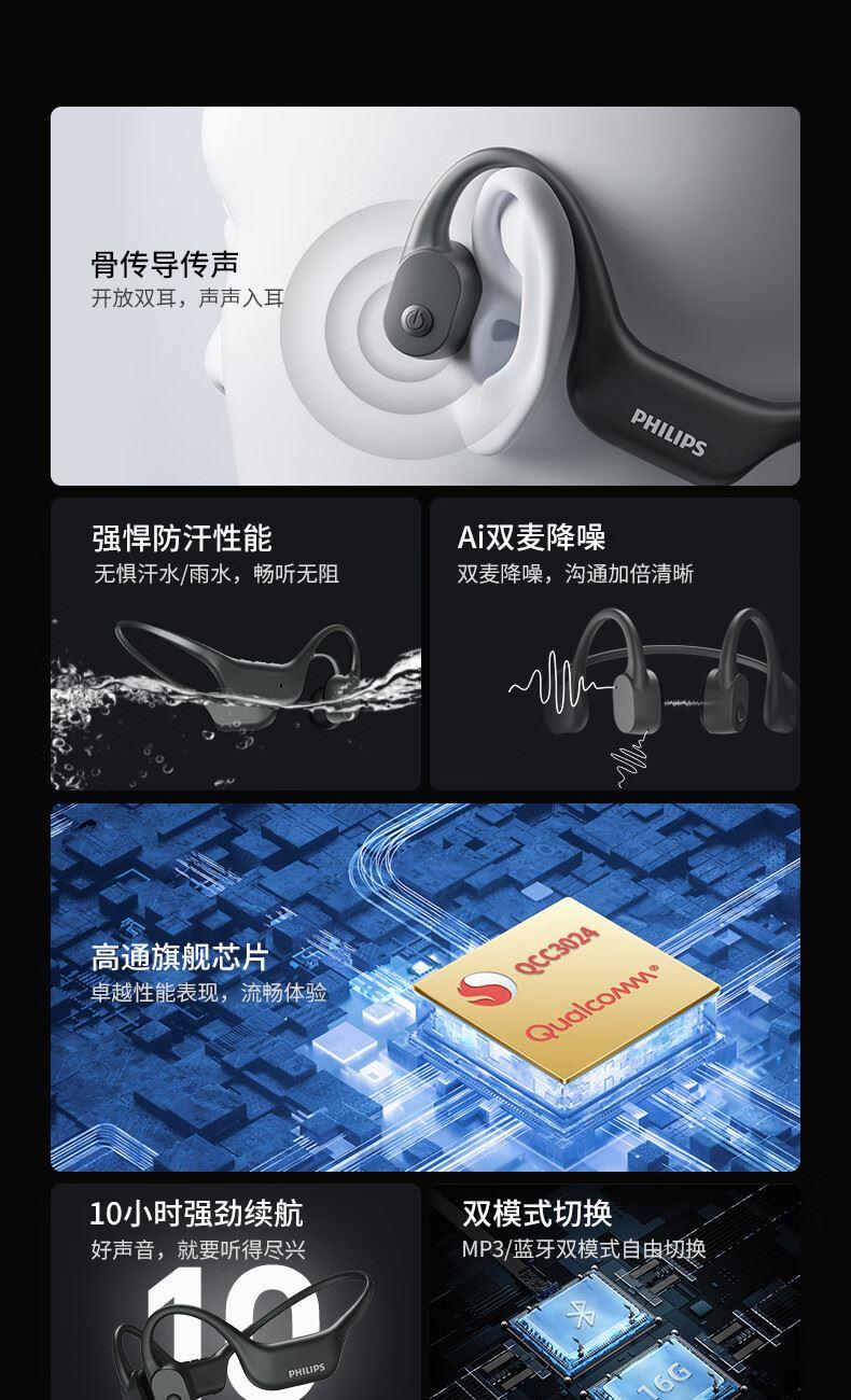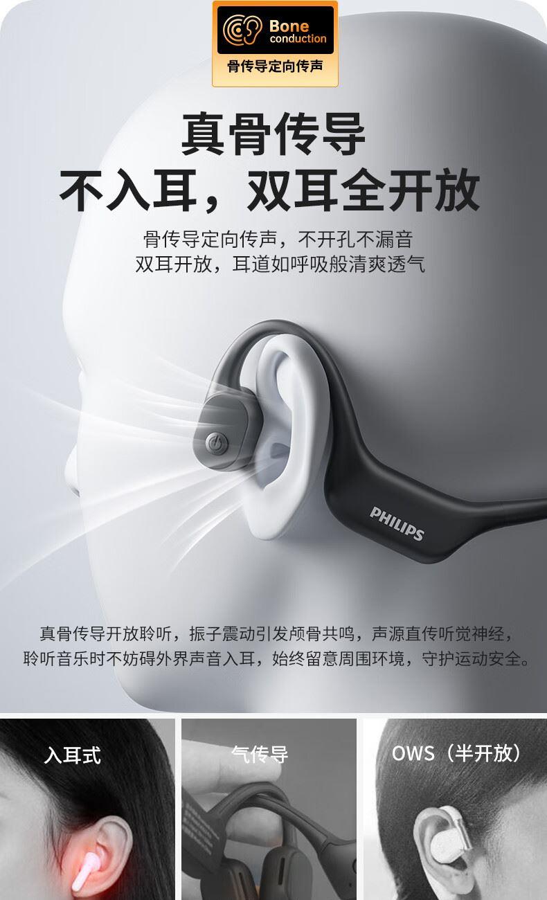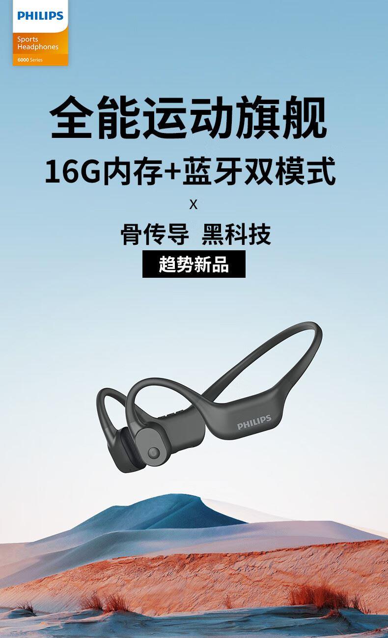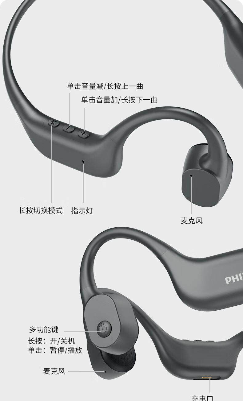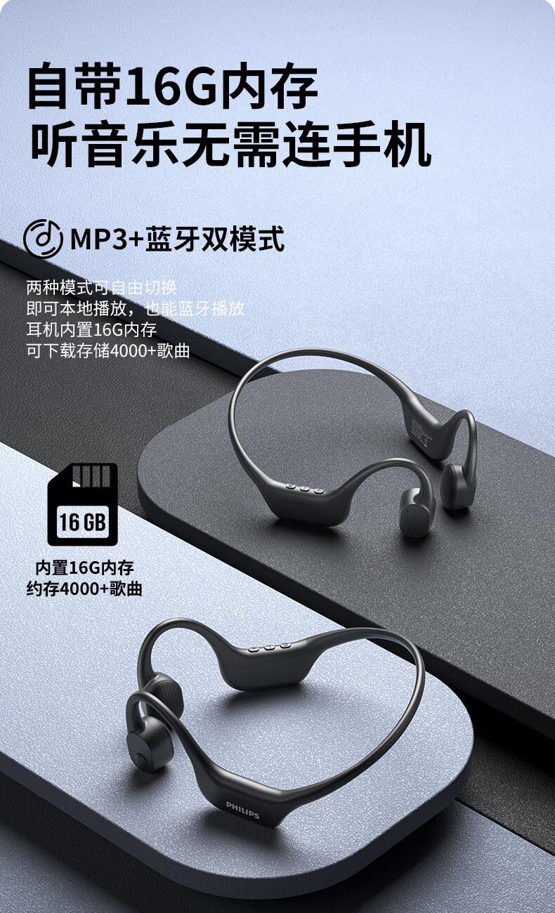 飞利浦16G内存骨传导蓝牙耳机TAA6609
