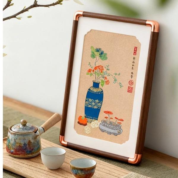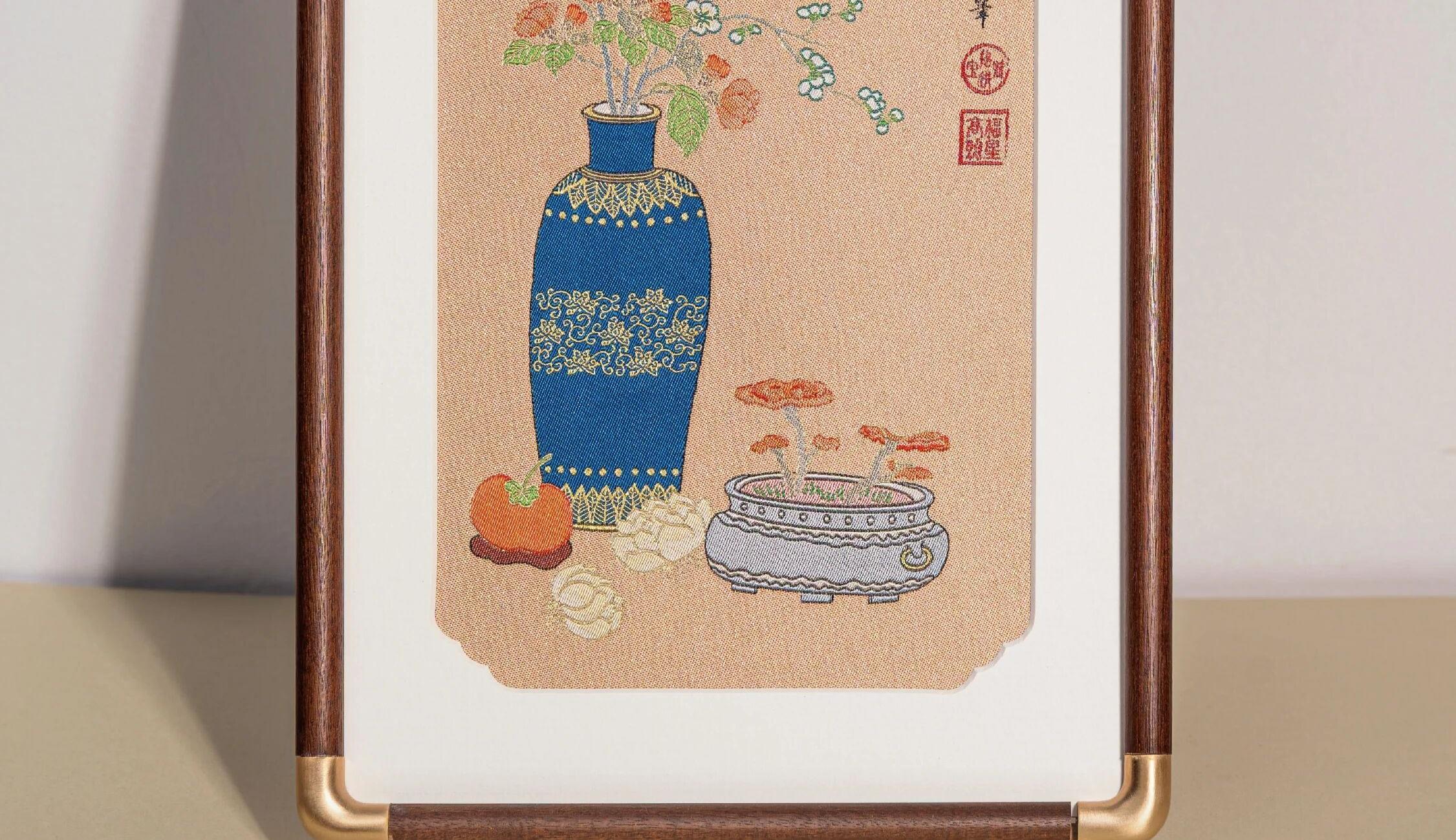 万事利文创新品真丝织锦镜框画织锦摆件