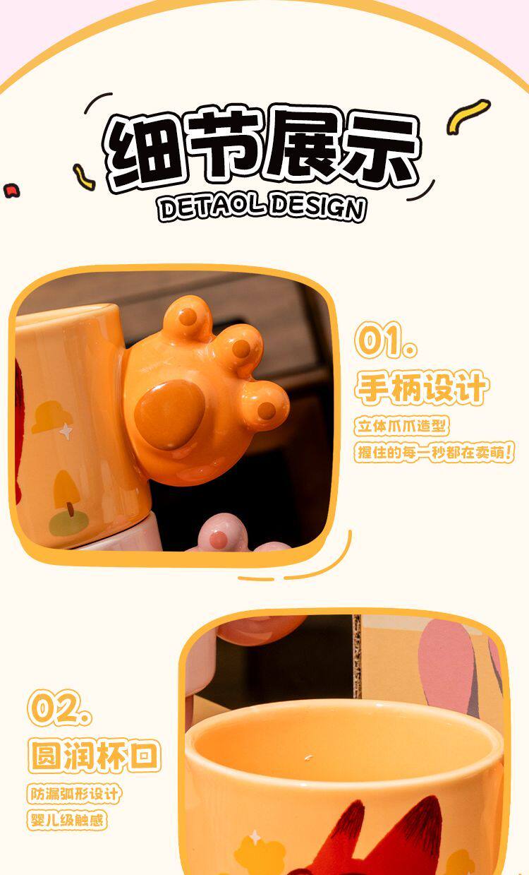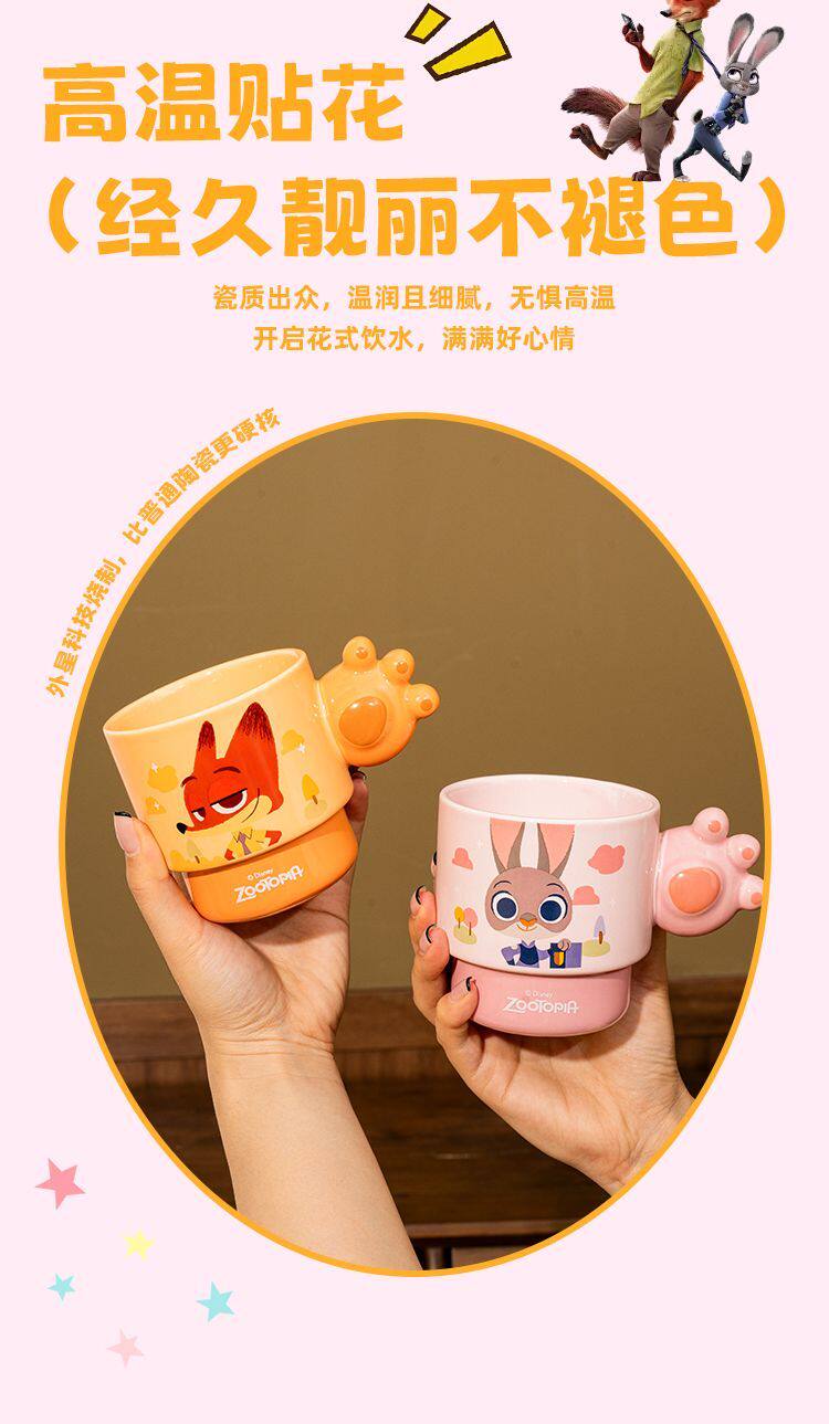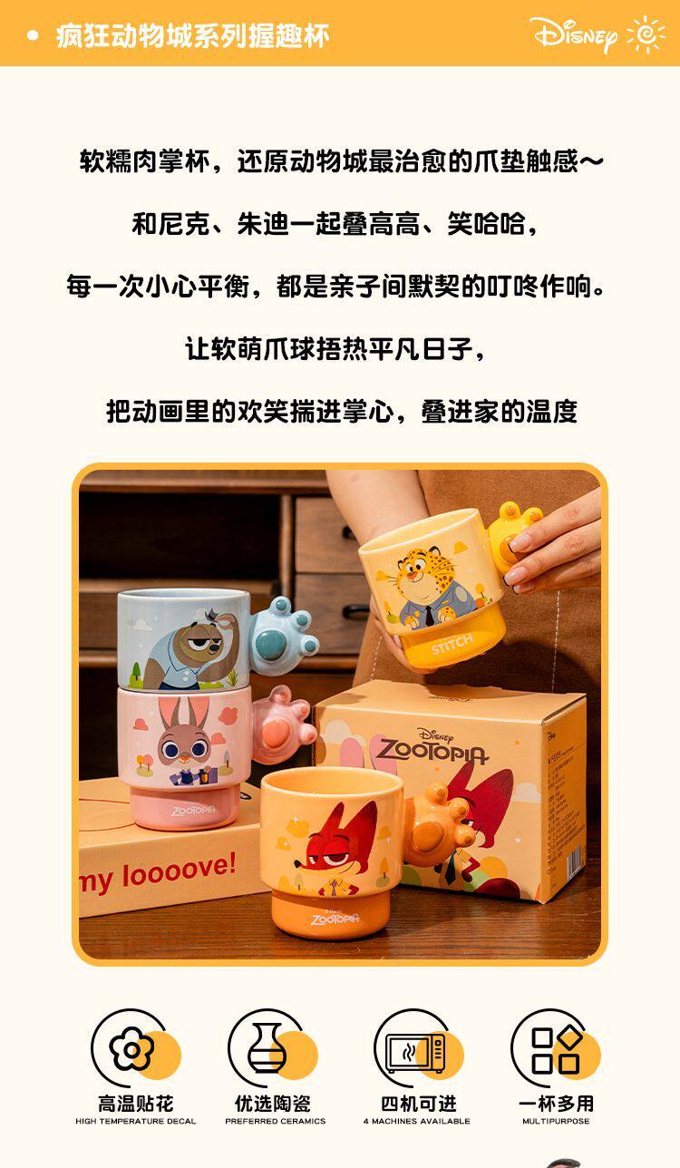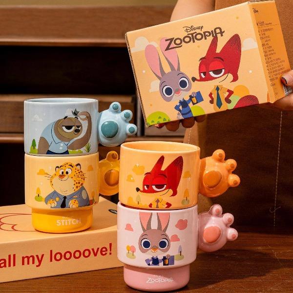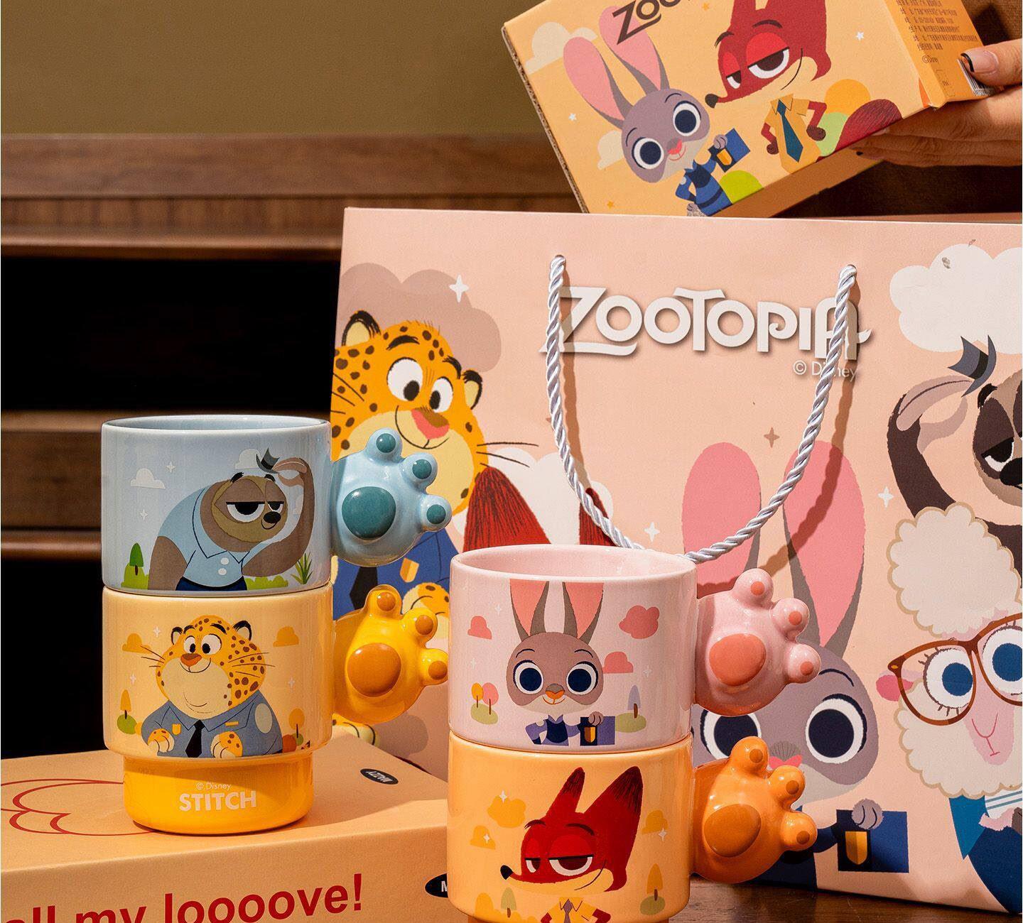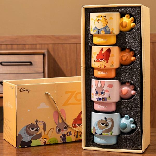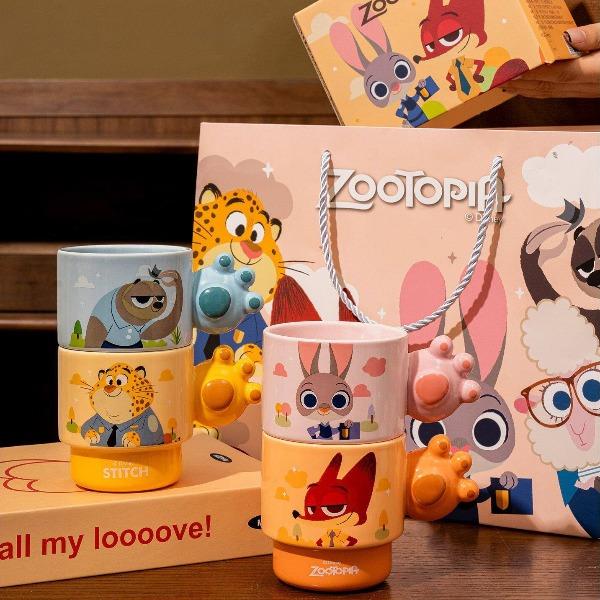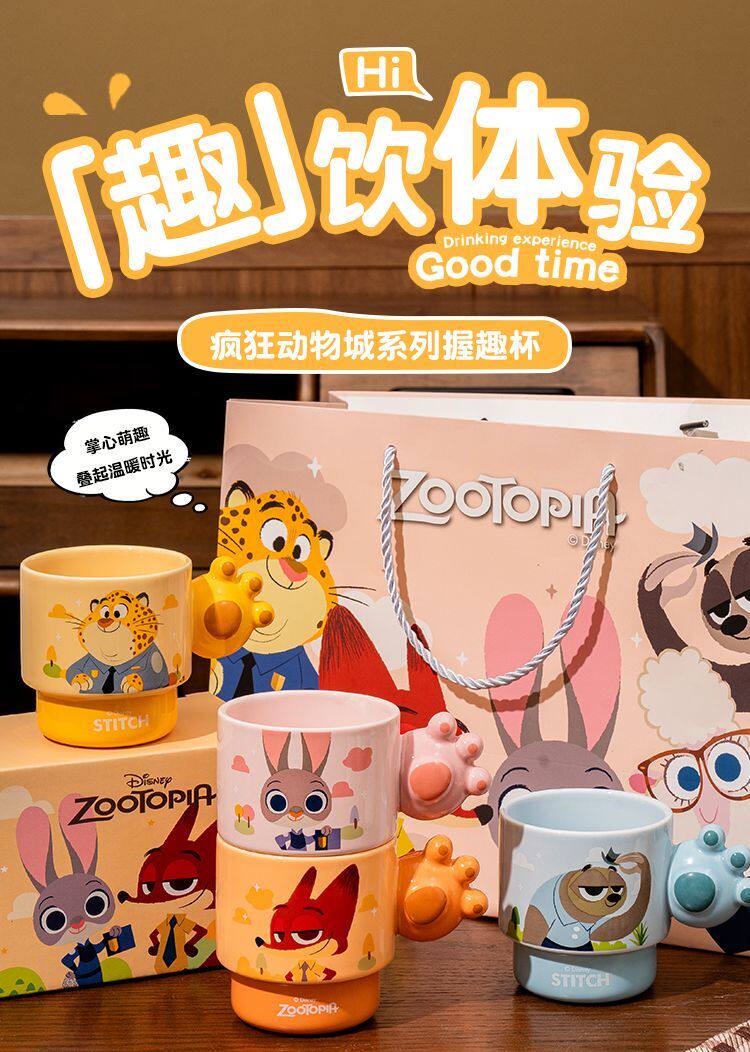疯狂动物城陶瓷马克杯咖啡叠叠杯、握趣杯4个【礼盒装】9936