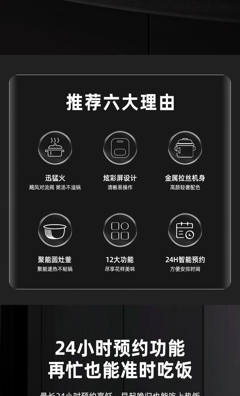 10大功能选择,顿顿新鲜不重样,24小时随心享,提前预约蒸煮;