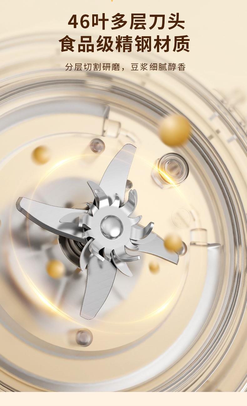 1、46叶多层食品级精钢材质刀头,分层切割研磨,让豆浆更细腻香醇