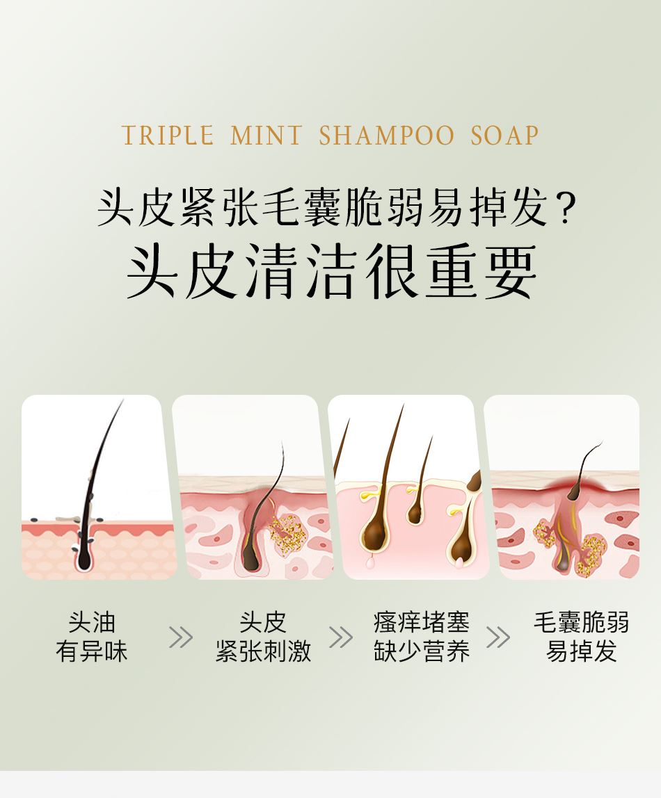 三重薄荷精油葡萄籽油乳木果油河东大盐皂 头发健康配方,改善厚重大油头 改善软塌,蓬松发根。