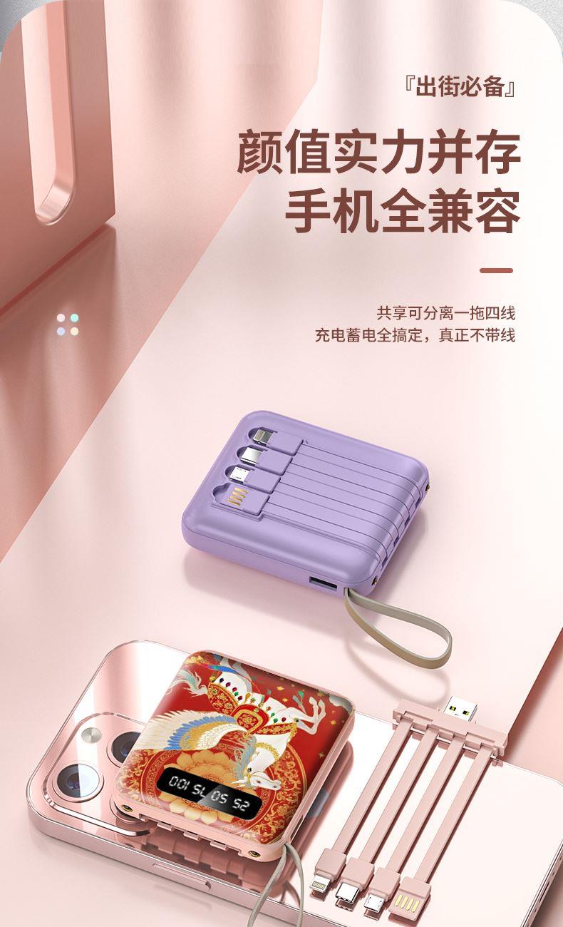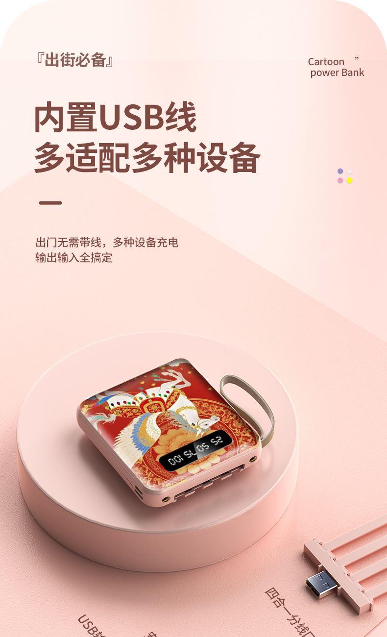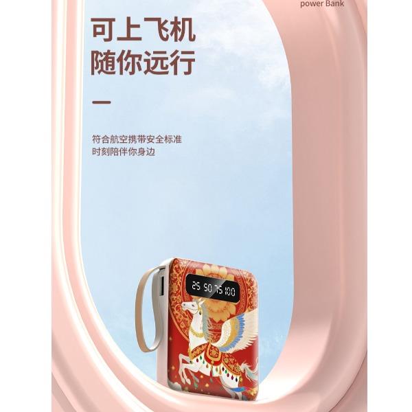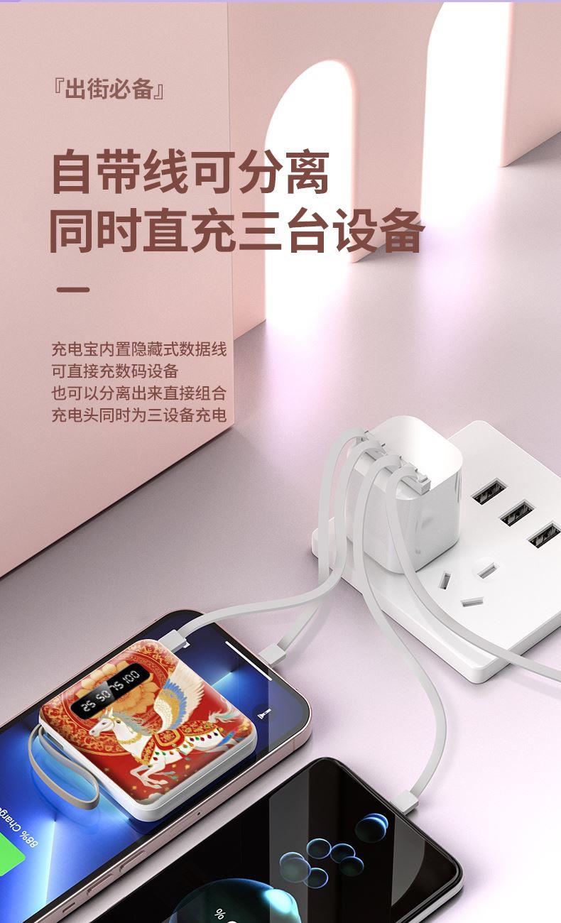 黛悦马年开门红方形自带线可拆卸移动电源充电宝快充现货带3c
