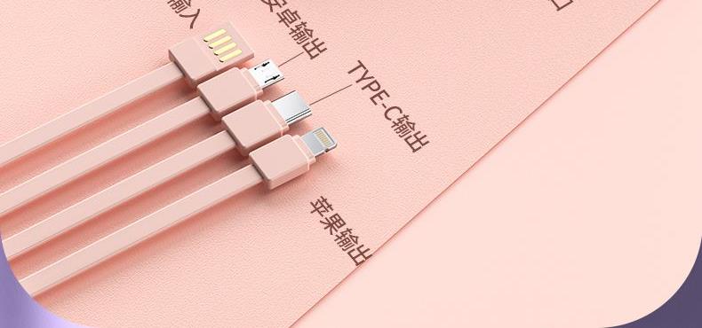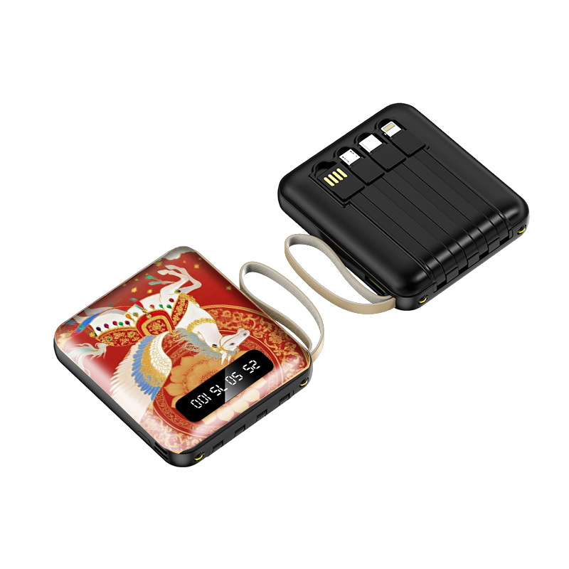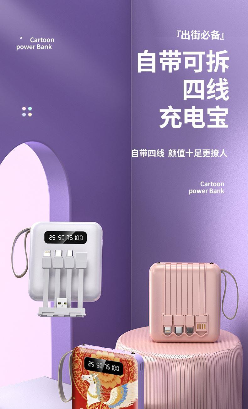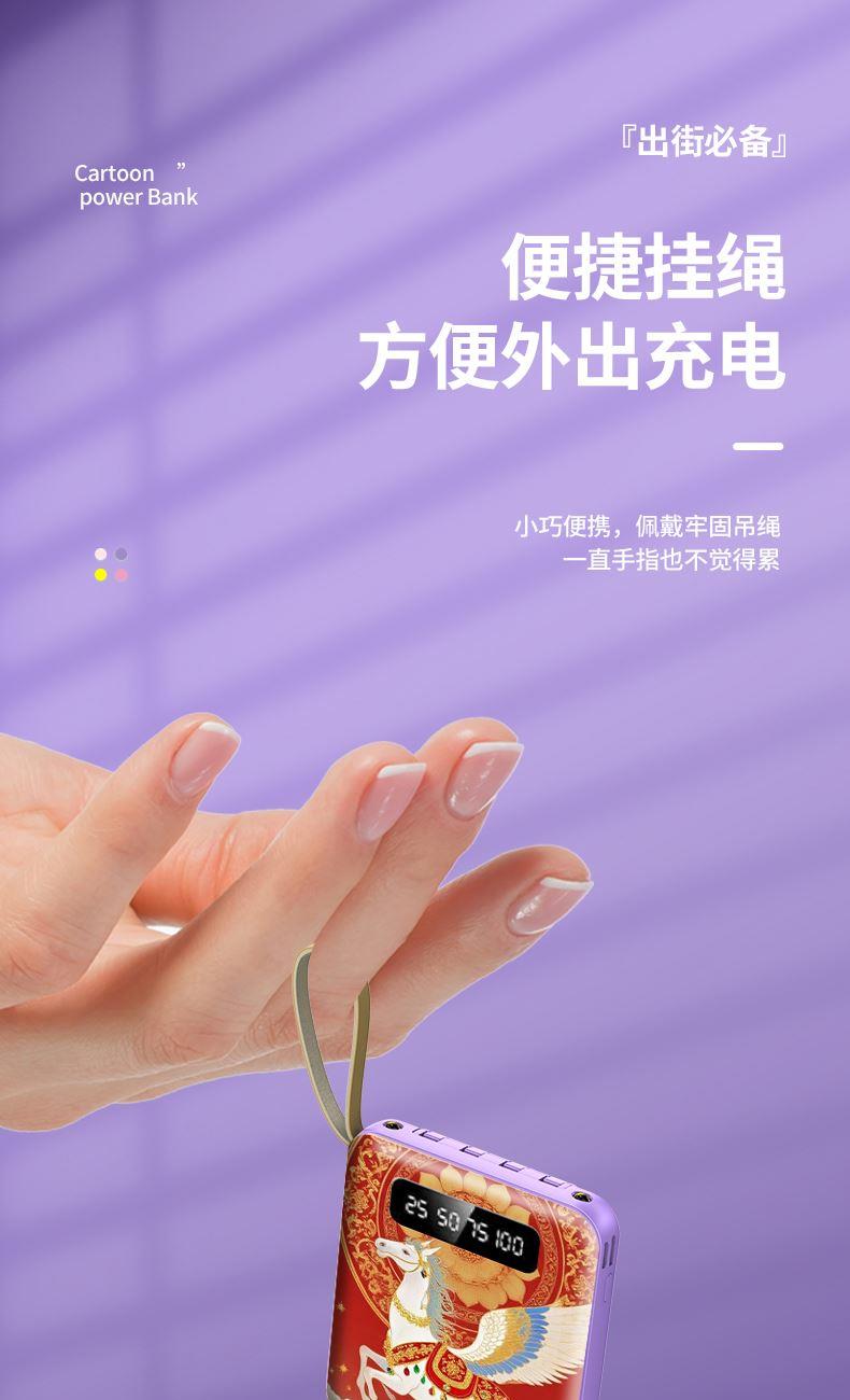 黛悦马年开门红方形自带线可拆卸移动电源充电宝快充现货带3c