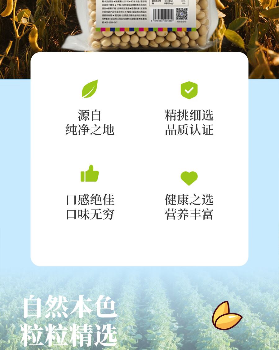 吉潮瑞鲜延边杂粮-黄豆500克*1袋 配料:黄豆 类别:谷物加工品 净含量:500g 产地:吉林省汪清县 保质期:12个月 贮存方法:置于阴凉通风干燥处