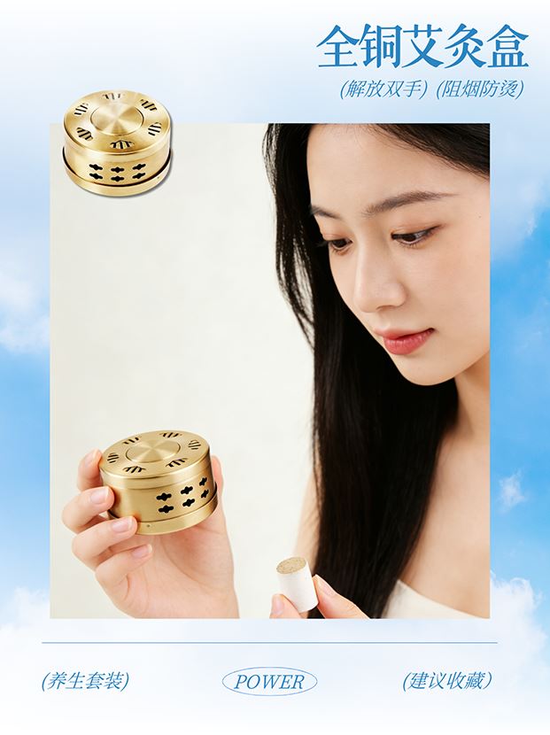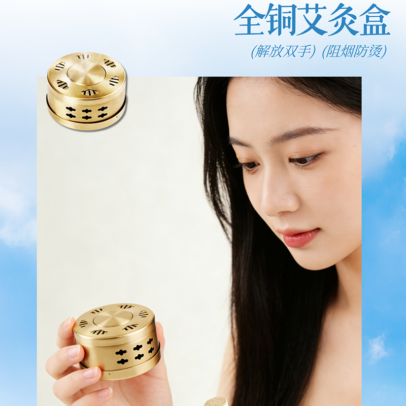 立体书型礼盒*1、艾灸无烟包*1、全铜艾灸盒*1、随身灸艾柱*1、艾灸贴*2、蒸汽热敷眼罩*2、暖颈贴*2