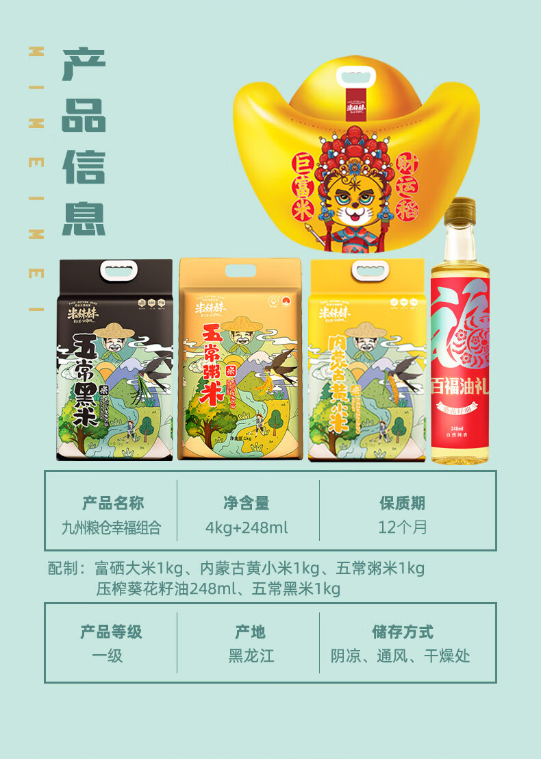 1 源自东北肥沃黑土。 2 五谷杂粮,营养均衡, 3 精美大礼包、送礼、发福利佳品。 4 科学营养搭配 、益智健体、营养健康,快乐成长 5 九州粮仓,家合万事兴,国昌民盛。
