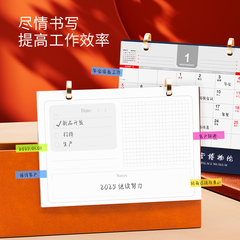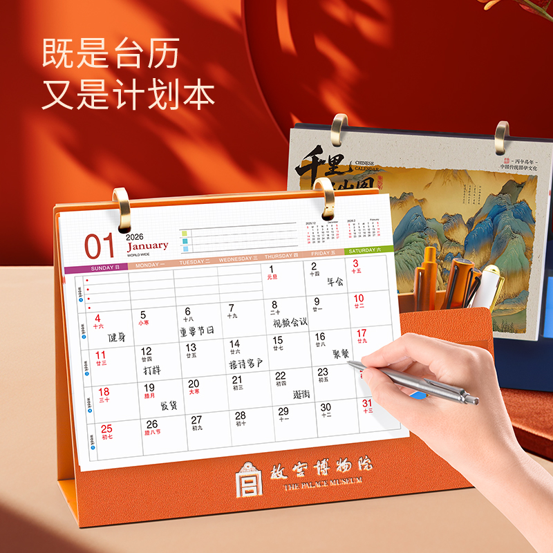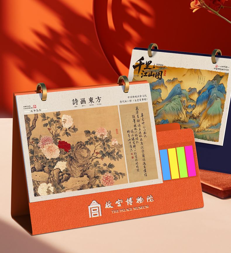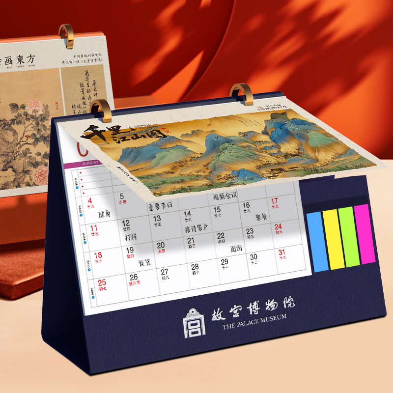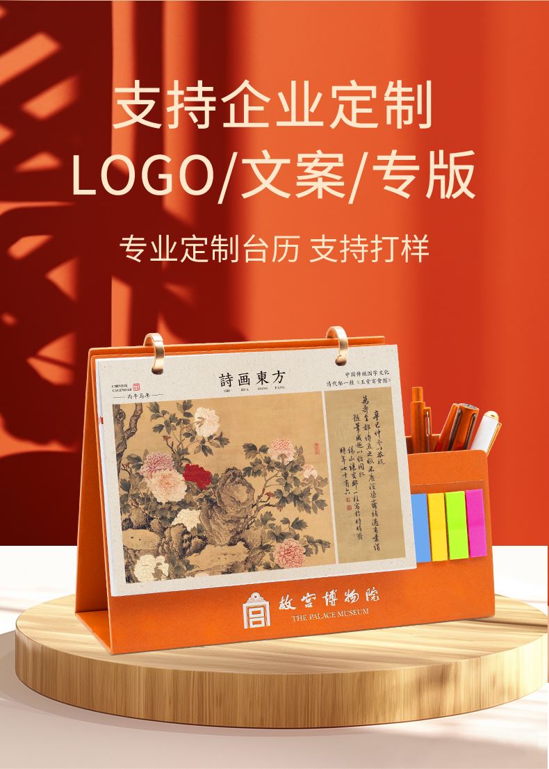 新款国潮皮质台历办公桌面创意摆件企业日历定制印logo