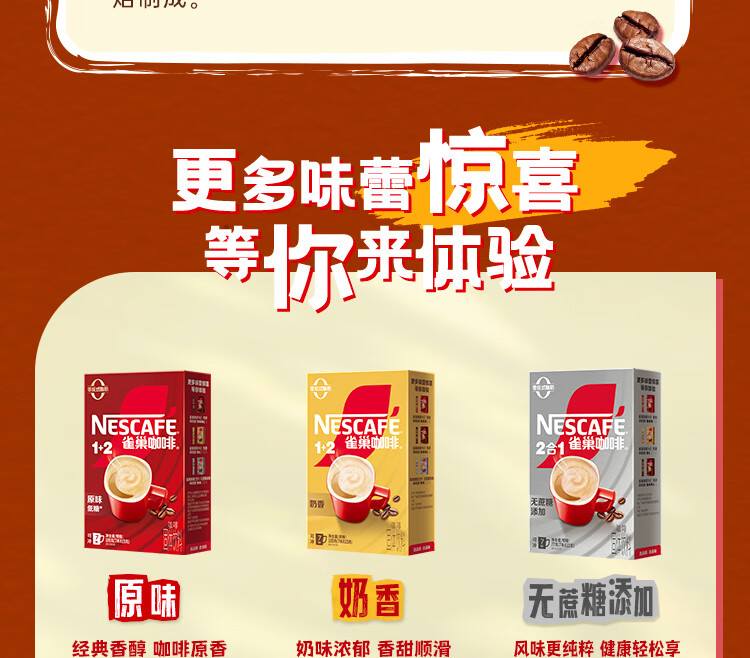 雀巢速溶咖啡1+2特浓低糖三合一冲调饮品90条1170g盒装