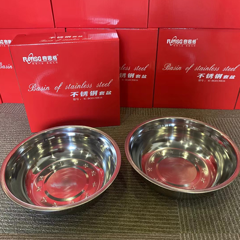 商品称呼:不锈钢两件套盆 产品型号:IC-BG0130816 产品规格:24CM 产品材质:410不锈钢 整箱数量:48套 备好“金盆”,喜迎“红利”!您的开门红厨房必备神器! 实用多用,承载“富”气! 从洗净一年的烦恼,到拌出生活的美味;从和面揉出团圆,到盛载丰收的喜悦。它几乎能承包您厨房里所有的备餐环节!过年用它来拌饺子馅、洗水果、做沙拉,意味着新的一年财富与幸福,盆满钵满,接都接不住! 双盆合璧,寓意“圆满”!