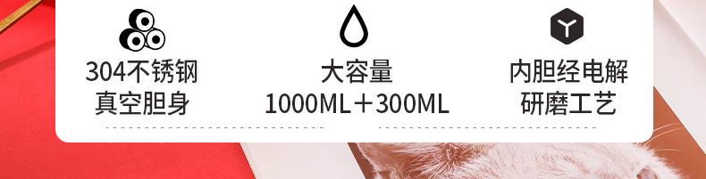 材 质:杯 底SUS316 内胆SUS304 壶 底SUS316 内胆SUS304 容 量:壶1000ml 杯300ml 彩盒尺寸:27.5*14.5*21.8 1. 304不锈钢真空胆身,锁温持久,寒冬热饮常暖; 2. 内胆经电解研磨工艺处理,光滑抗污,符合食品接触标准,清洁省心; 3. 极简杯身线条利落,造型简约不失设计感,轻量便携适配多场景; 4.一杯一壶满足多种运用场景