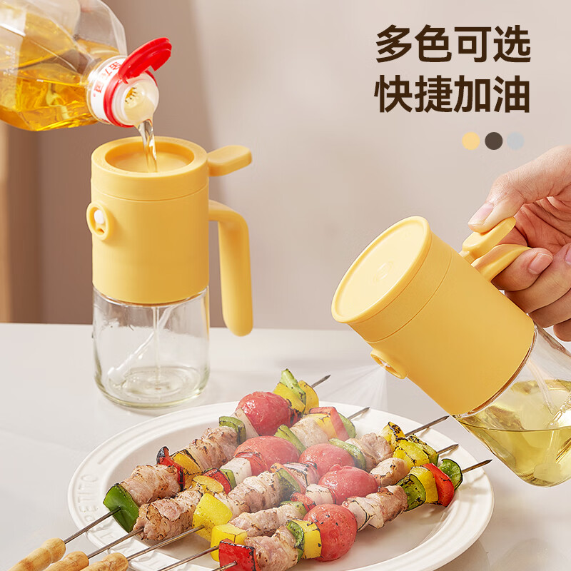 一提开盖3秒加油雾化喷油 无需拧盖 轻松倒油大口径 肆意倒不外漏 “立体广角喷雾”真正的均匀雾化 强压下也能瞬时铺开保持扇形黄金夹角 偏芯油管设计不留底油干净卫生 弯管设计:细密滤网不存旧油 顶盖硅胶密封圈开合方便防尘 瓶体旋转盖密封不漏油