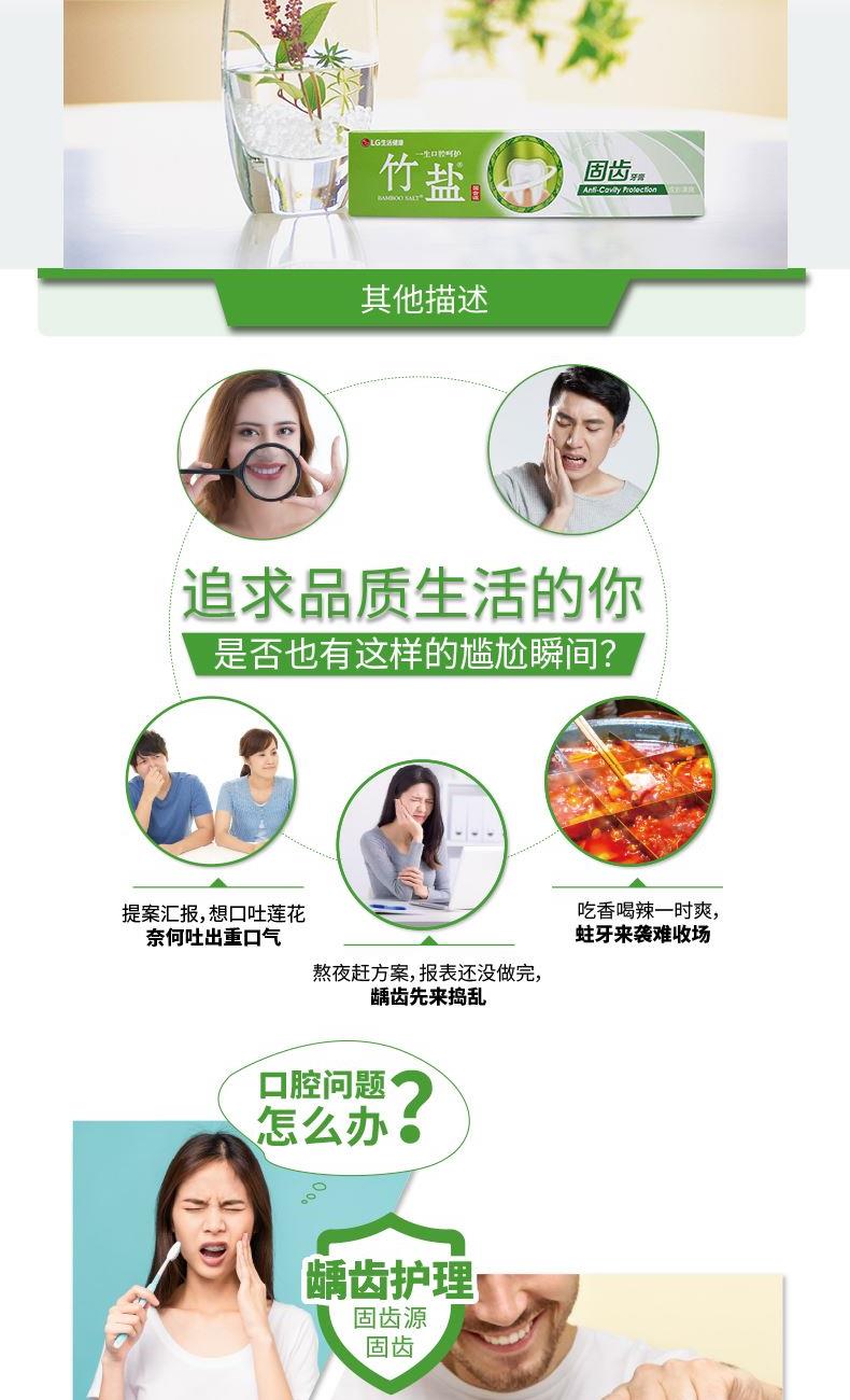 •特有含氟配方在牙齿表面形成坚固保护膜,预防锯齿; •天然竹盐成分含有丰富的矿物质,有助于温和呵护牙齿和牙龈;