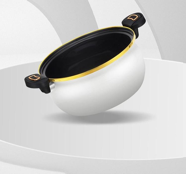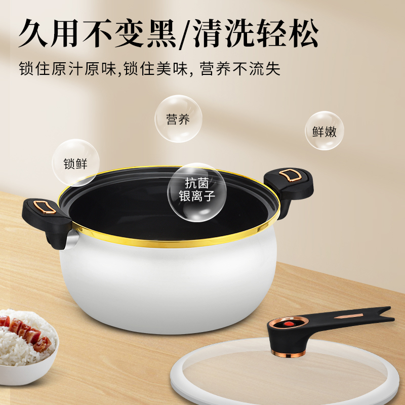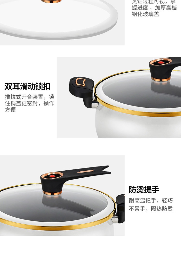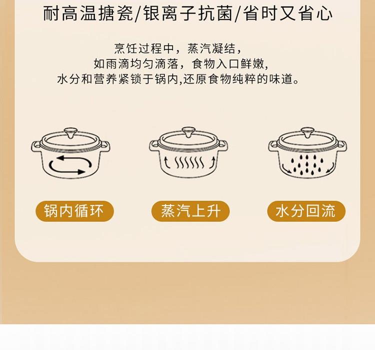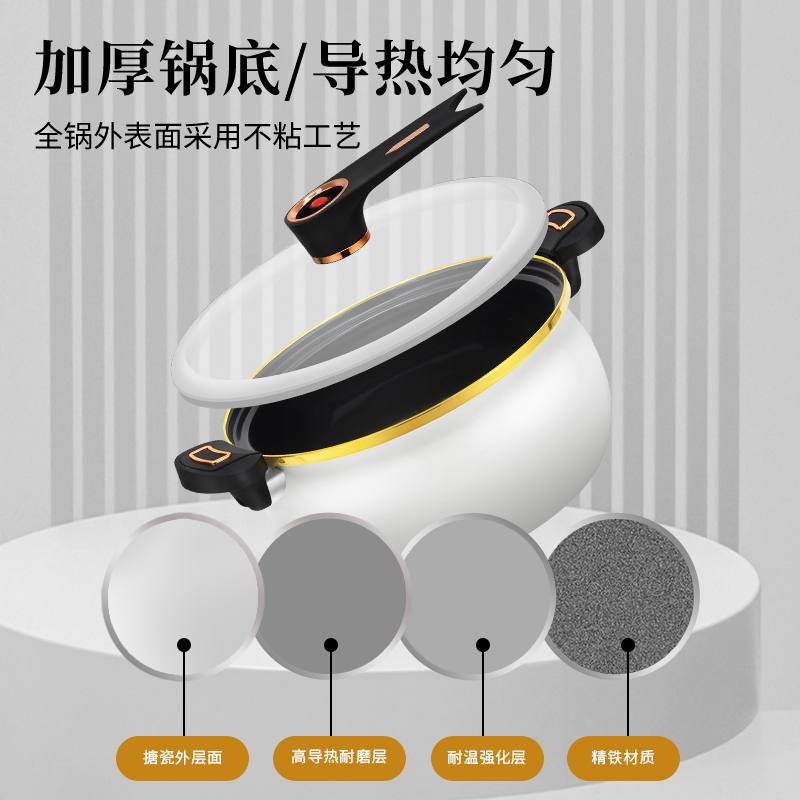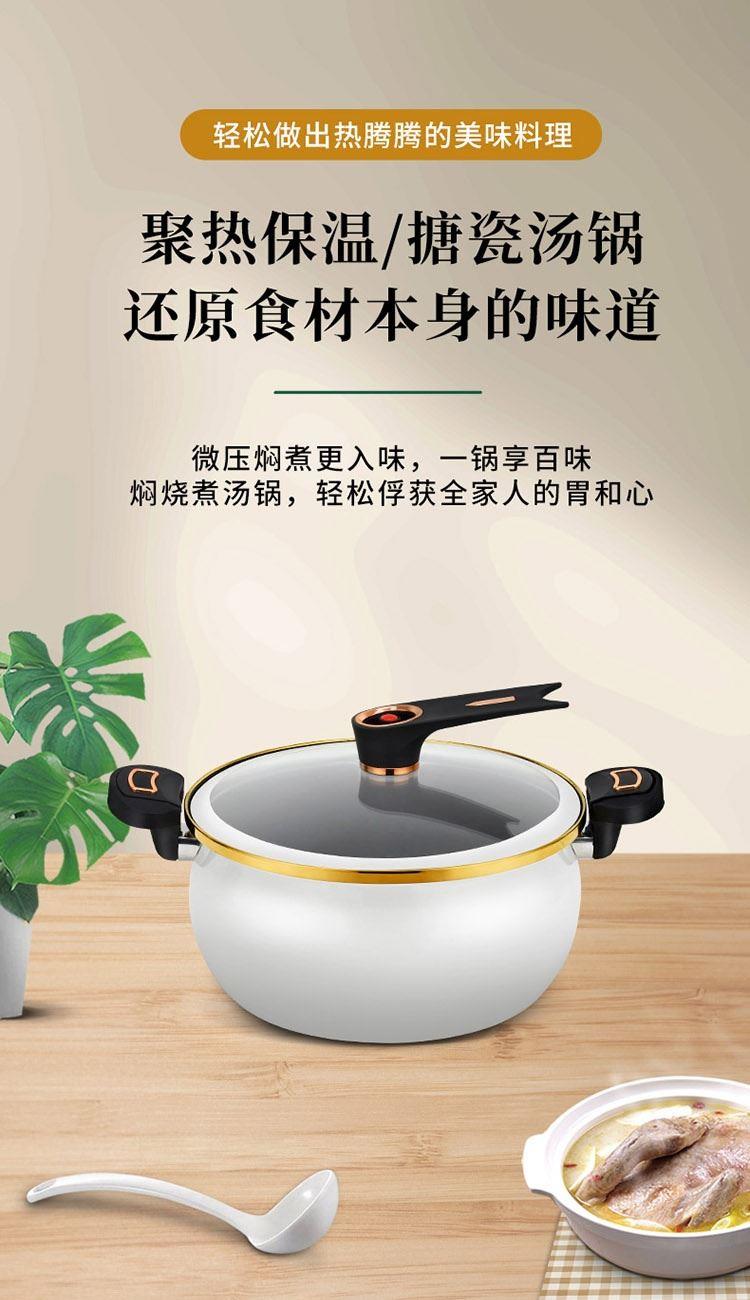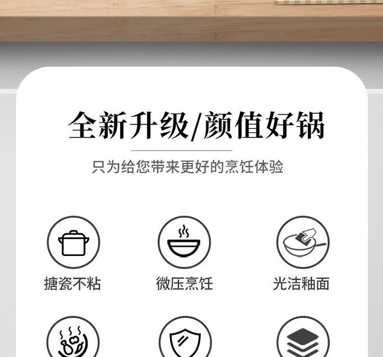 规 格:26CM汤锅 材 质 :精铁+麦饭石不粘涂层 锅身采用国内先进搪瓷珐琅工艺,永不生锈,时 尚健康安全;锅身瓷釉通过900度高温烧制,无毒无味,光滑易清洁,使用更舒心;原生态胶木手柄, 简约而不简单的设计风格;超高的耐腐蚀性能,可存放食物,功能更强大