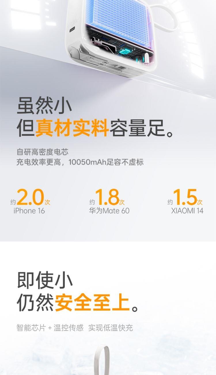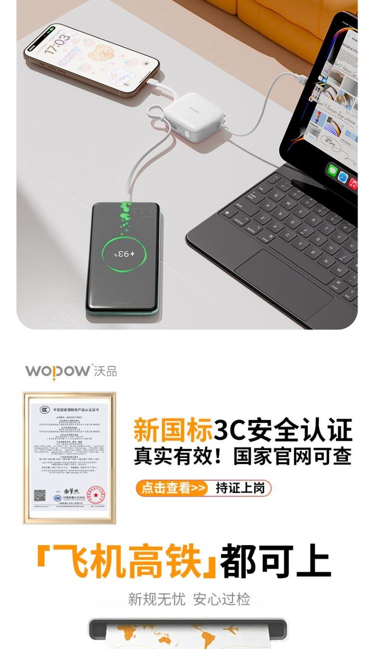 低内阻高密度电芯,充电效率更高,低温快充更安全。符合移动电源新国标标准,94V0级防火外壳,登机安全无忧