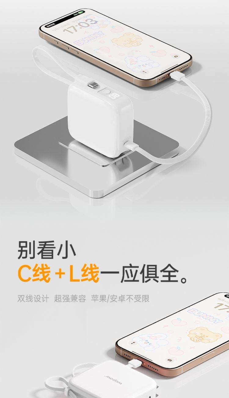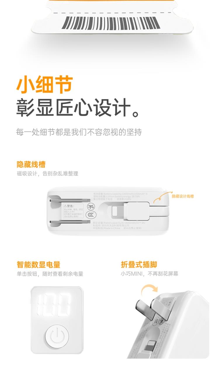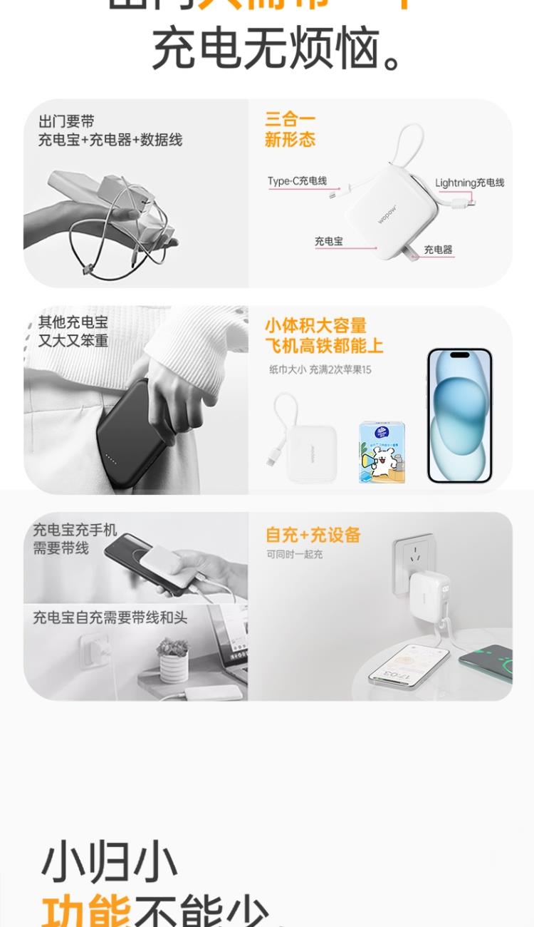 超能三合一,移动电源+充电器。10000mAh超mini,
