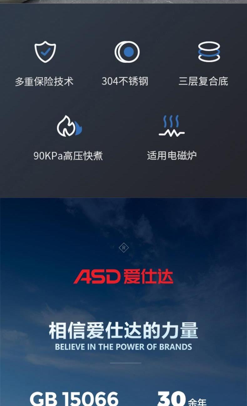 ASD爱仕达多保险不锈钢压力锅YS24C3Z