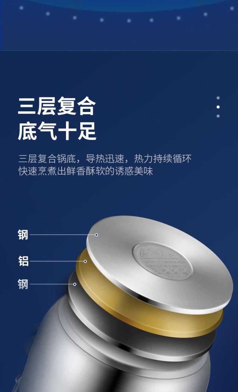 4、三层复合锅底,导热迅速,热力持续循环快速烹煮出鲜香酥软的诱惑美味。