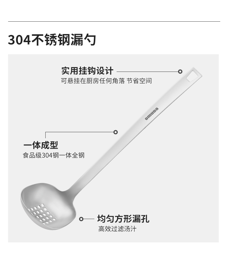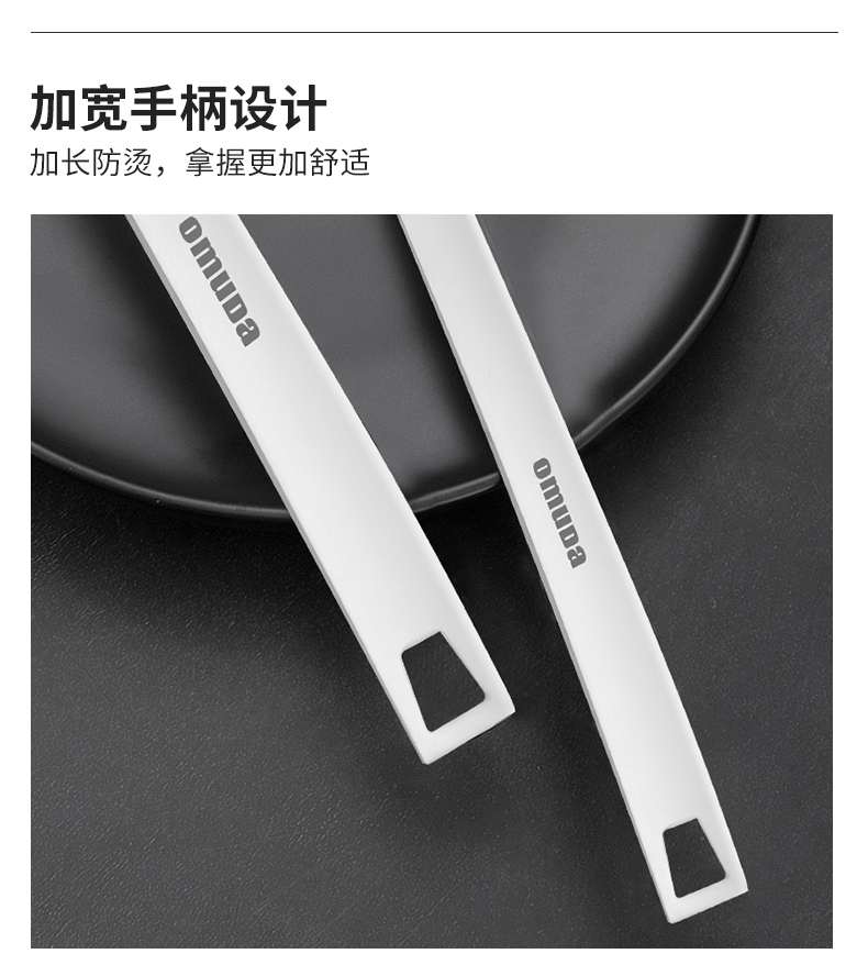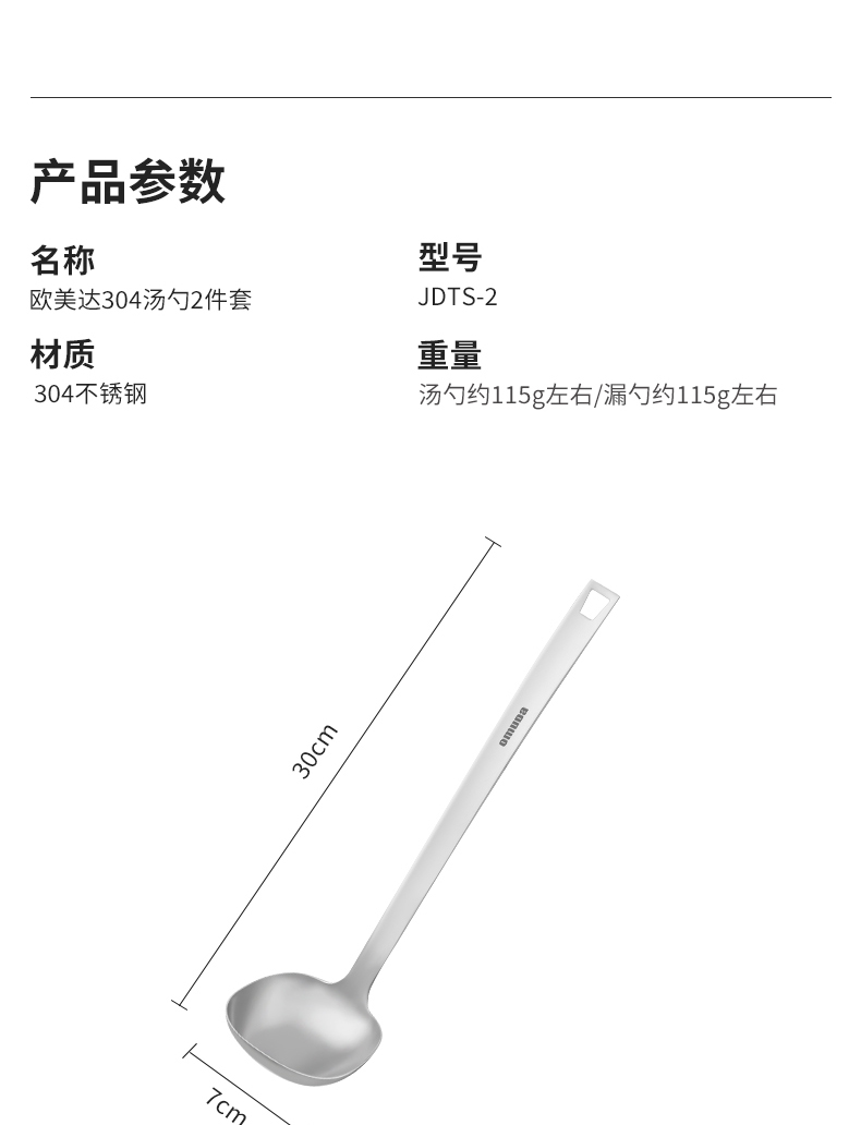 规格:两件套、30cm 净重:0.23kg/套 材质:304不锈钢 ①采用优质304不锈钢材质,坚固耐用,人体工程学手柄设计,防热隔烫,手感更舒适 ②选砂光工艺处理,不易产生刮痕,圆筒状手柄便于抓握,带给您便捷的烹饪体验 ③整体不锈钢材质,易清洁,无卫生死角,耐腐蚀、安全卫生