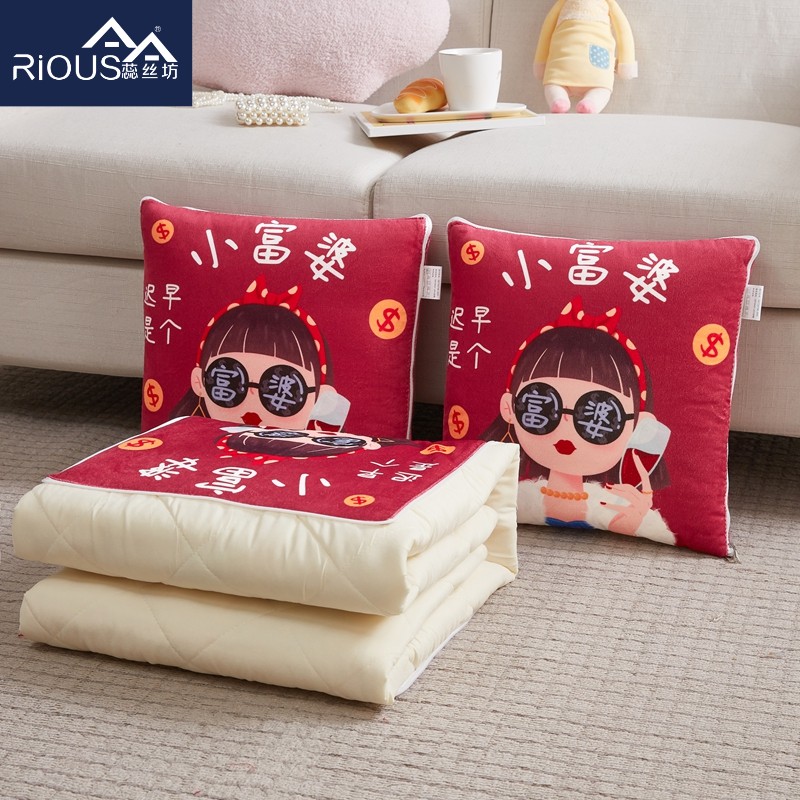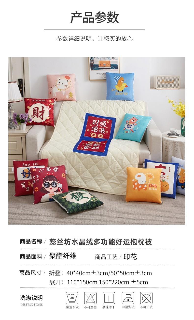 蕊丝坊家纺水晶绒多功能好运打全格抱枕被