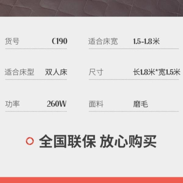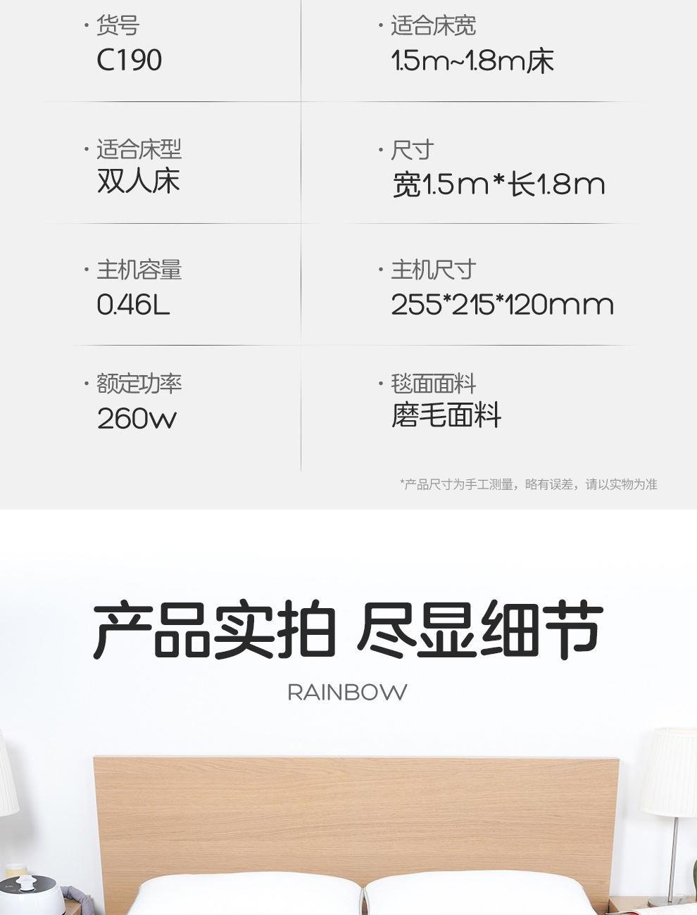 彩虹C190驱潮保暖除螨磨毛面料恒温水暖毯1.8*1.5米